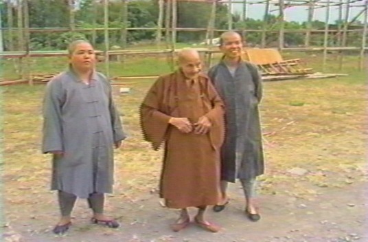 傳聞上師(左)陪老和尚巡視妙通寺工地。