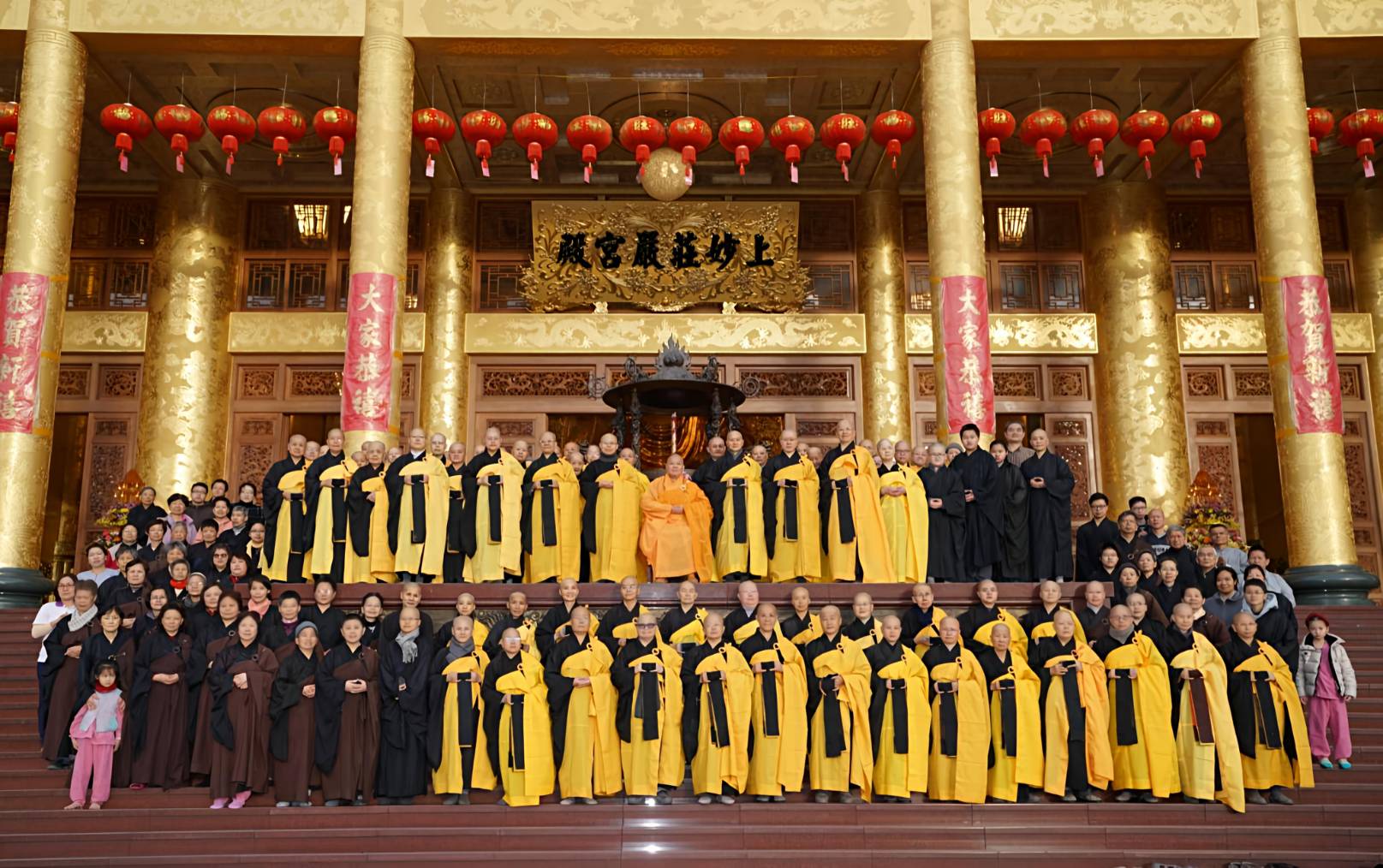 民國108年農曆正月初一在毘盧樓閣與大眾師和信徒合影。
