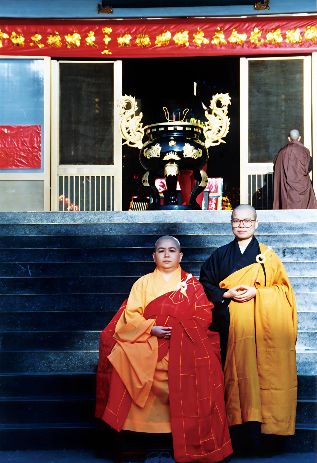 ↑傳敦法師(左)出家前從未與老和尚交談,三句話,金刀剃下娘生髮,師徒因緣,絕非偶然。
