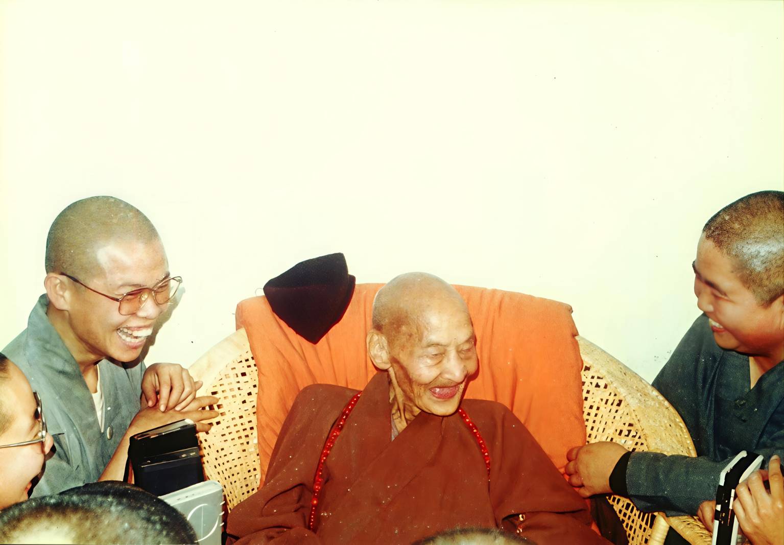 民國75年(1986)1月3日,老和尚召集弟子在客堂前曬太陽,親打木魚並囑弟子一起念佛,念一陣佛號後,老和尚將木魚交給傳聞上師,傳聞上師打木魚與眾同念一陣佛號後,老和尚將木魚取回後交予傳敦法師,法師打木魚與眾同念一陣佛號後,老和尚又將木魚取回,親打木魚與弟子一起念佛。兩天後,老和尚坐化示寂,一代高僧,法脈傳承,盡在不言中。