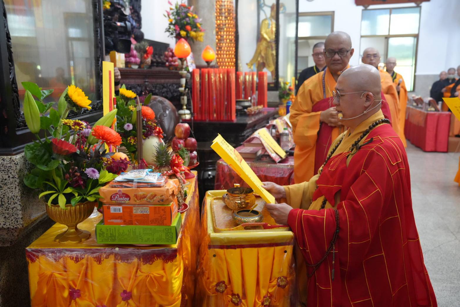 準備:祈禱文疏和齋主名單各1份,金爐1個放置殿外。
