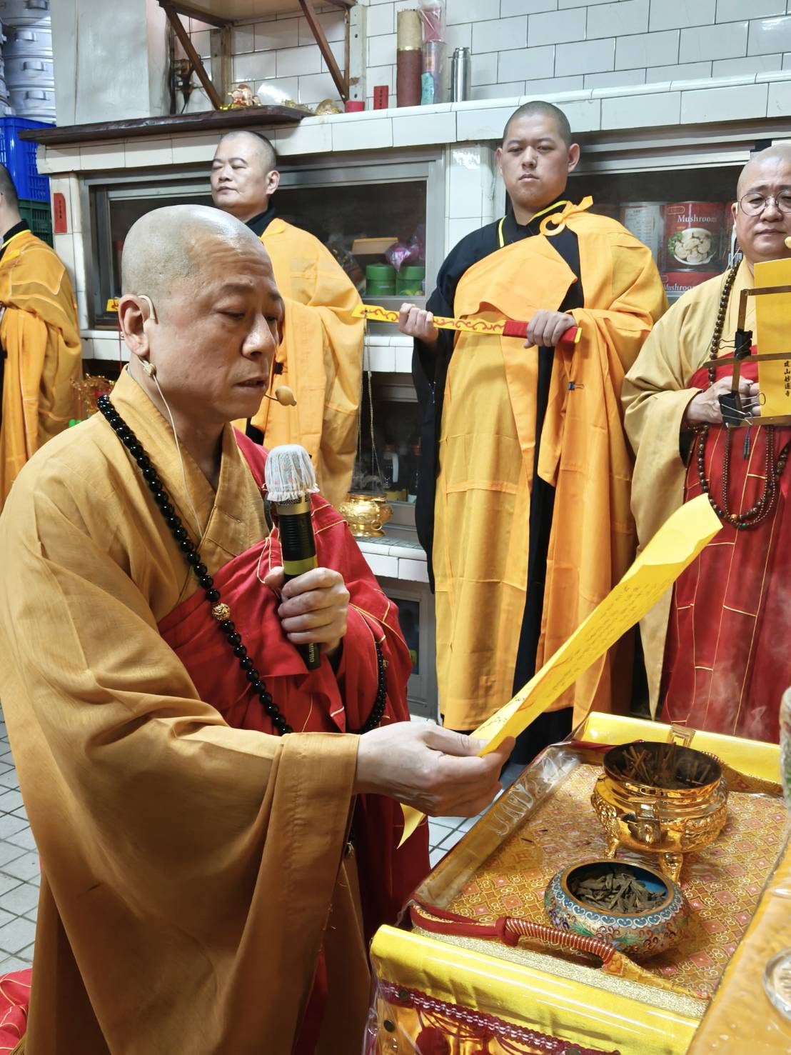 準備:祈禱文疏和齋主名單各1份,金爐1個。