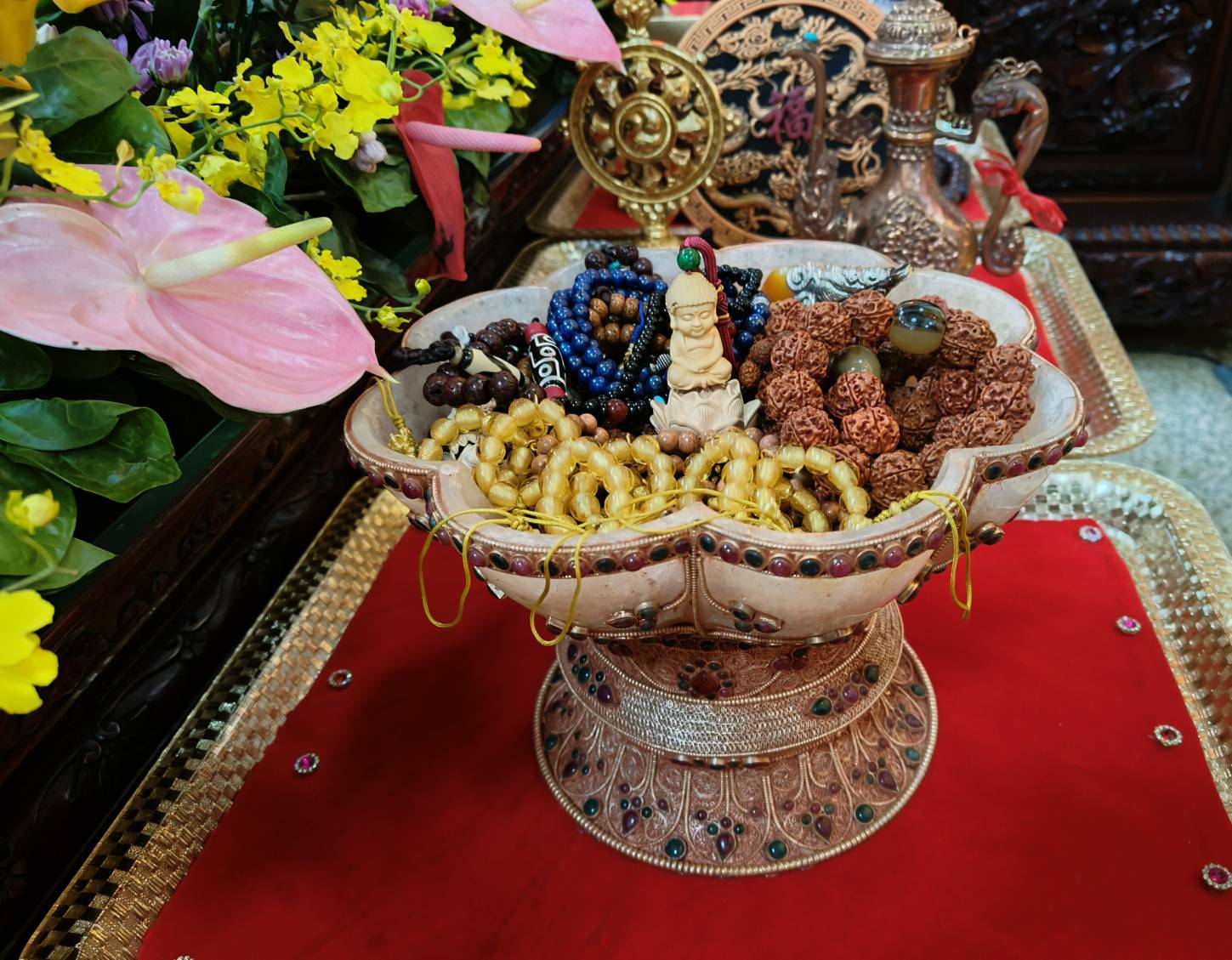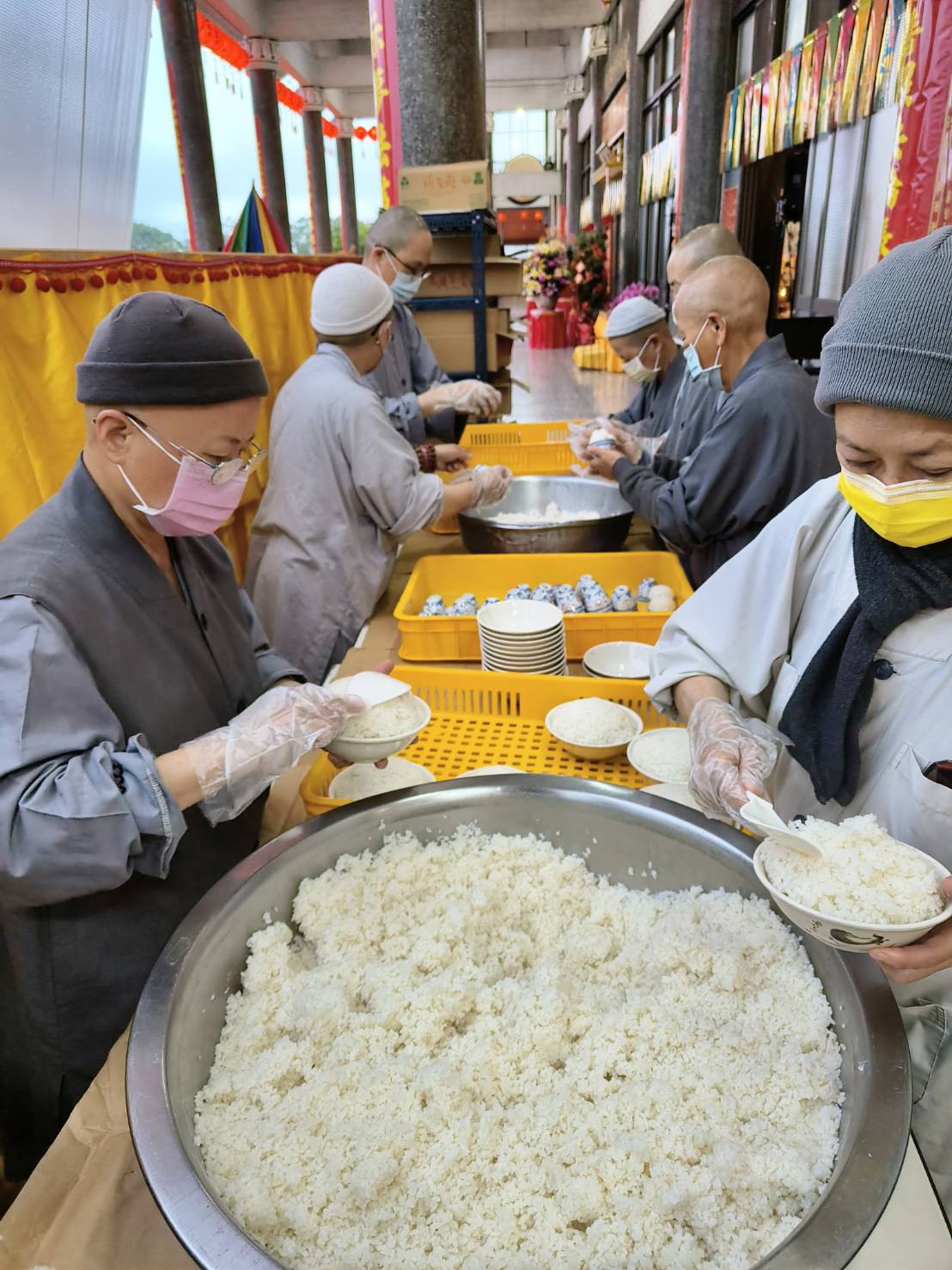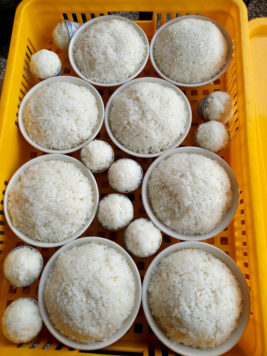 佛事前用瓷杯和大碗盛裝米飯供下堂14席。