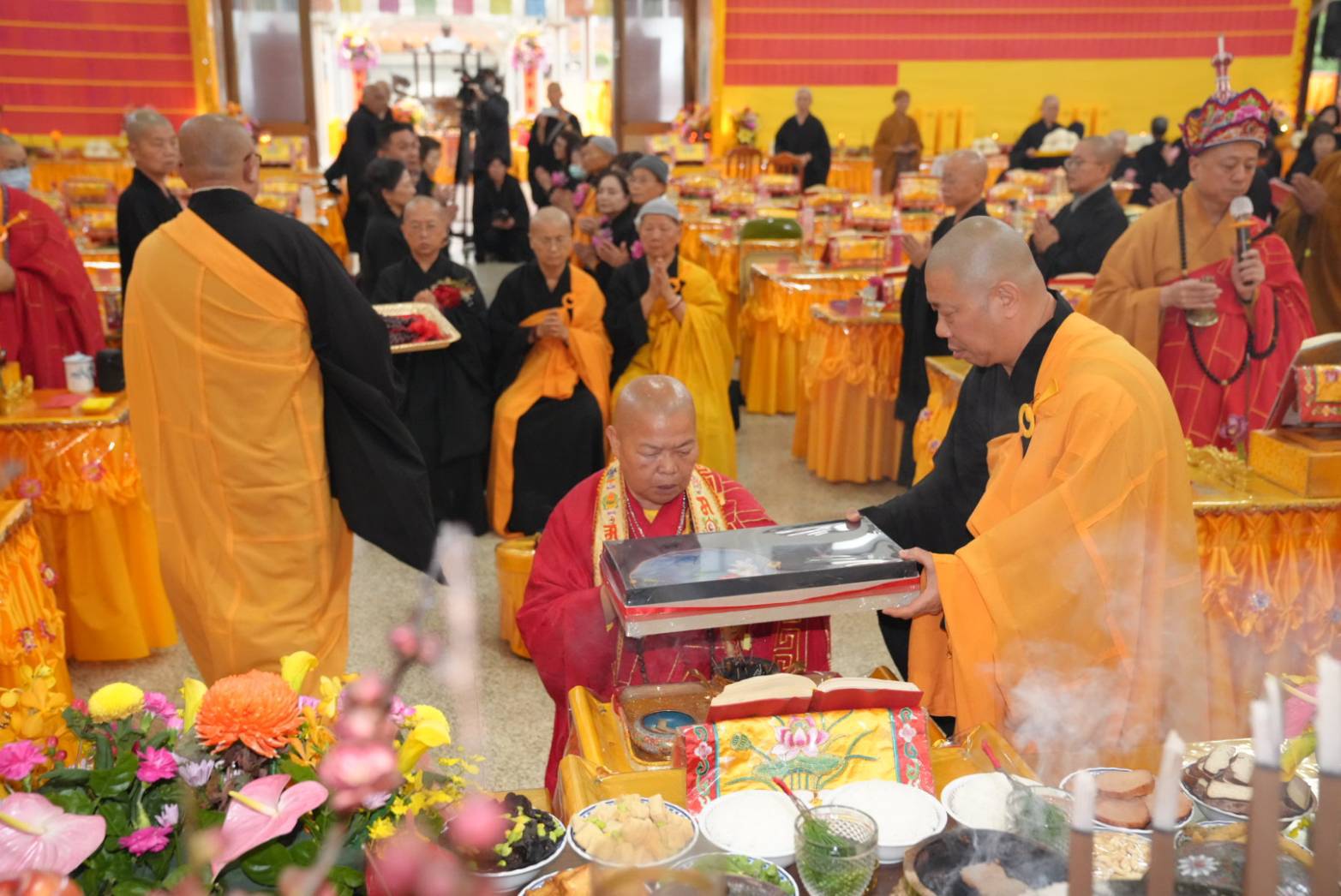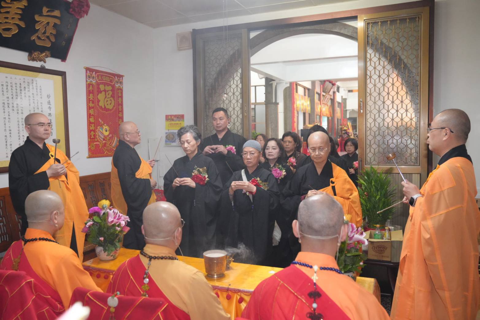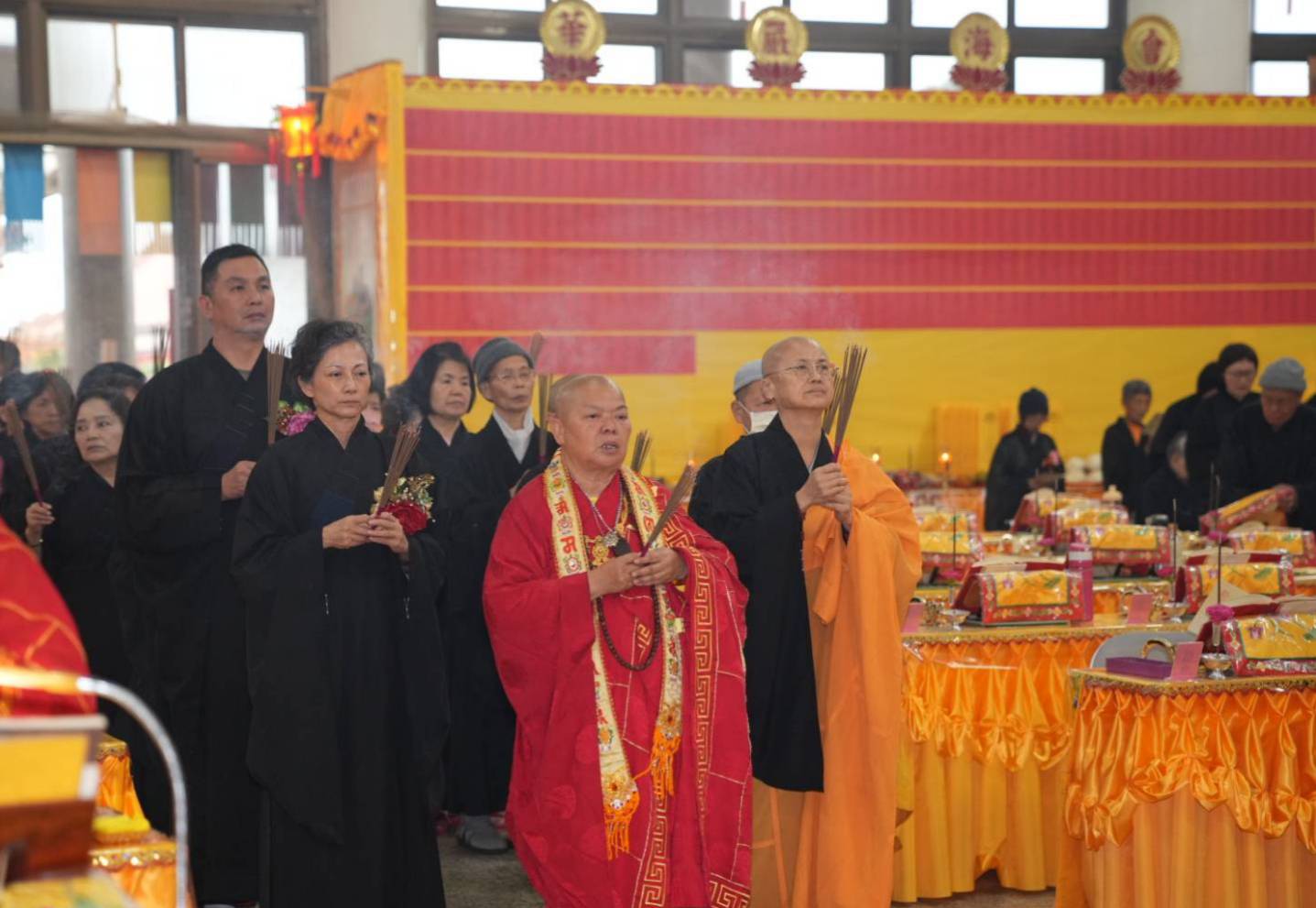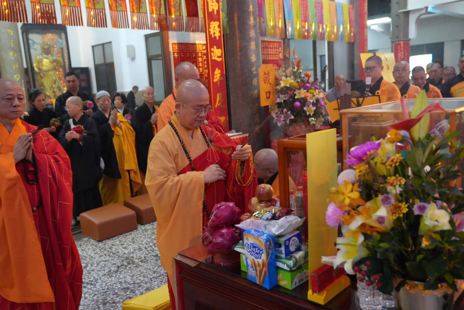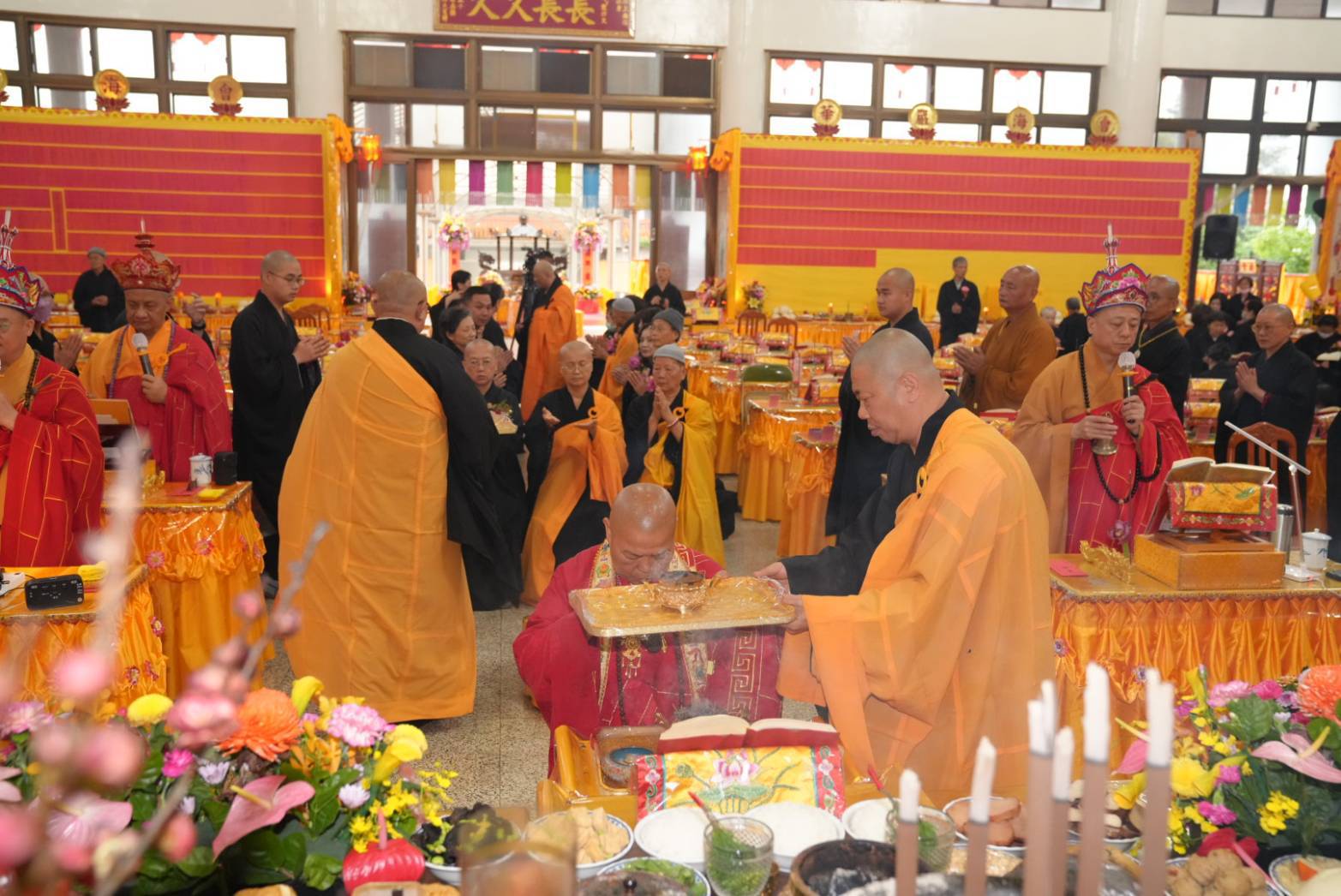 香燈引領齋主到法堂恭請金剛上師