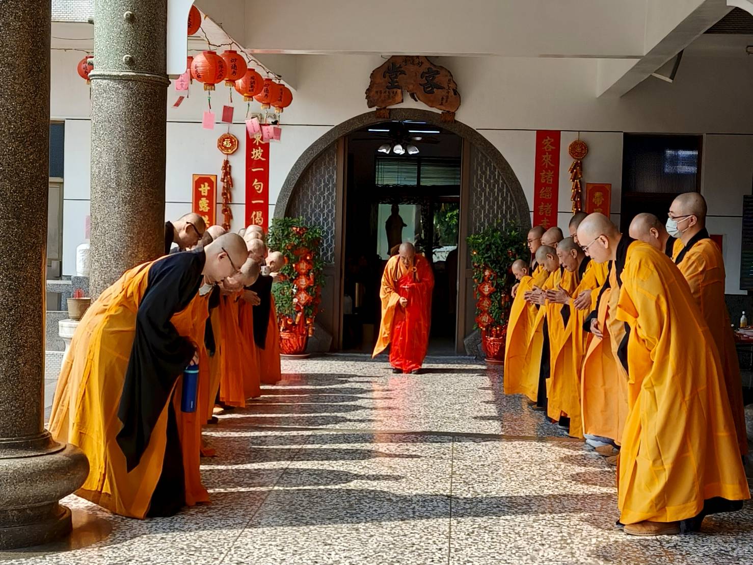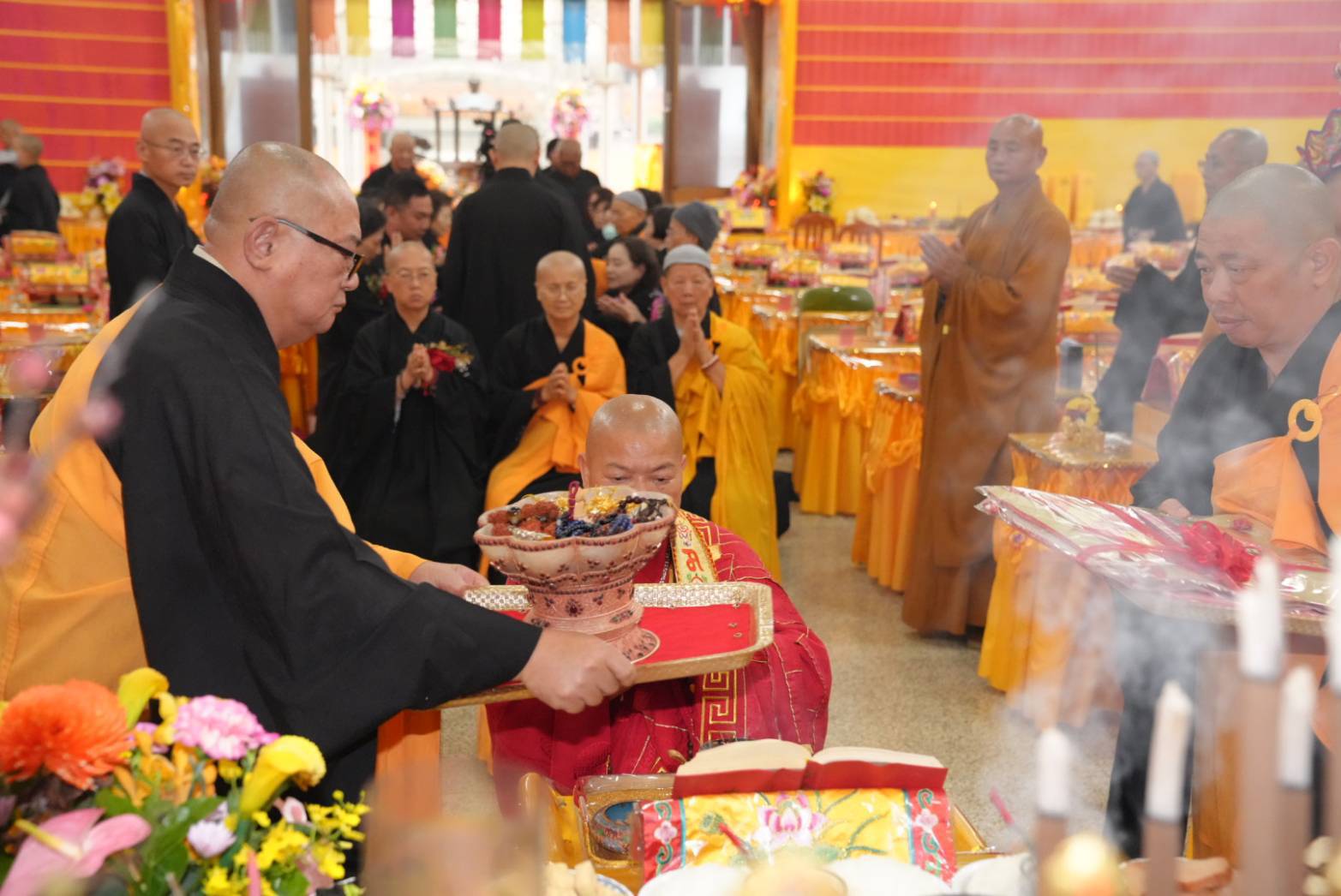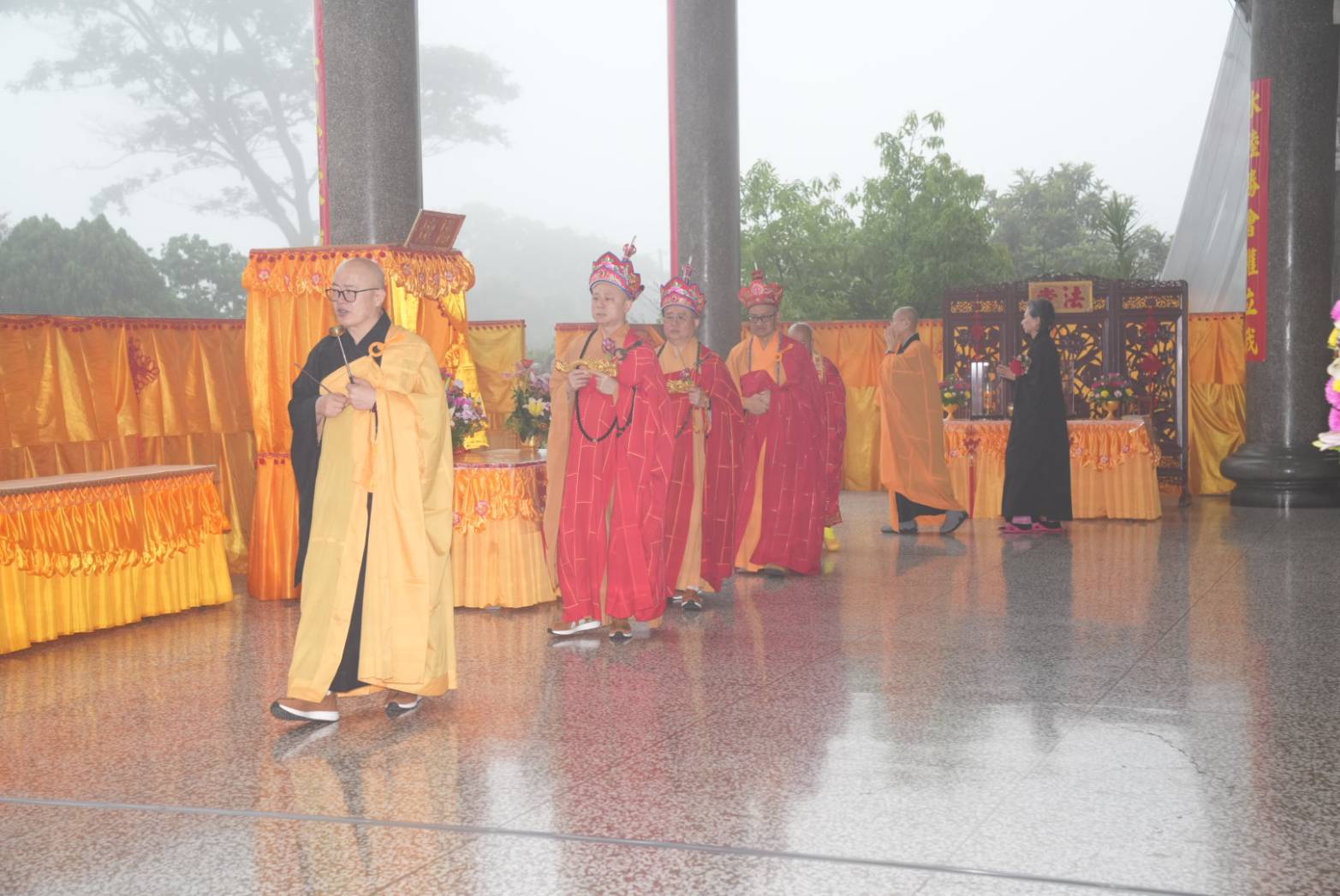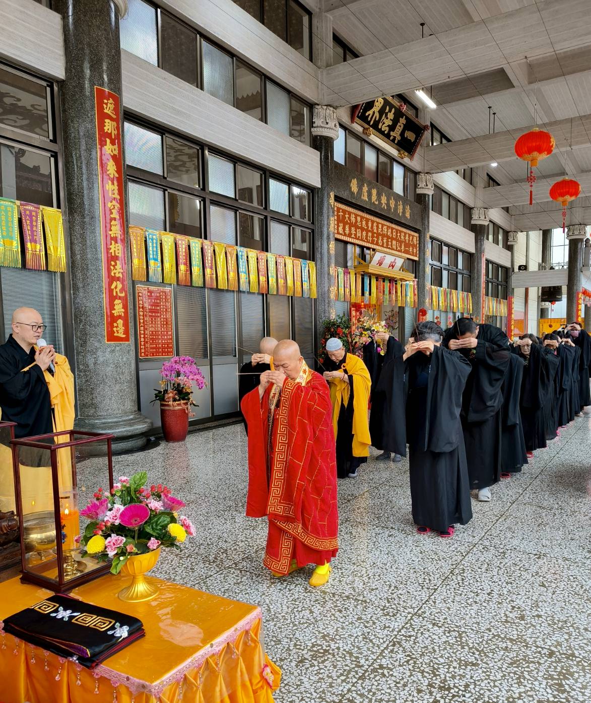 香燈引領齋主到法堂恭請金剛上師