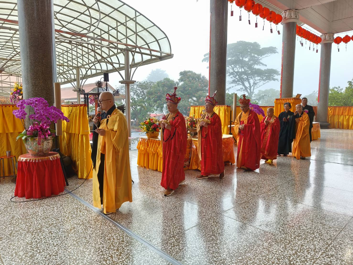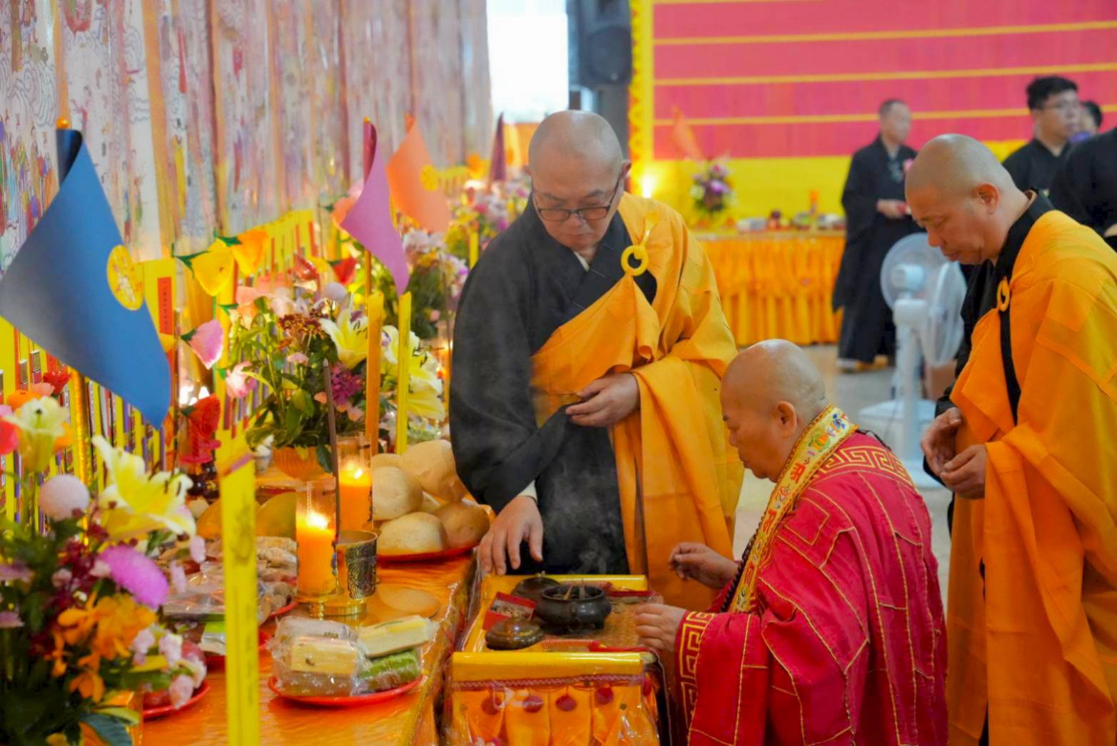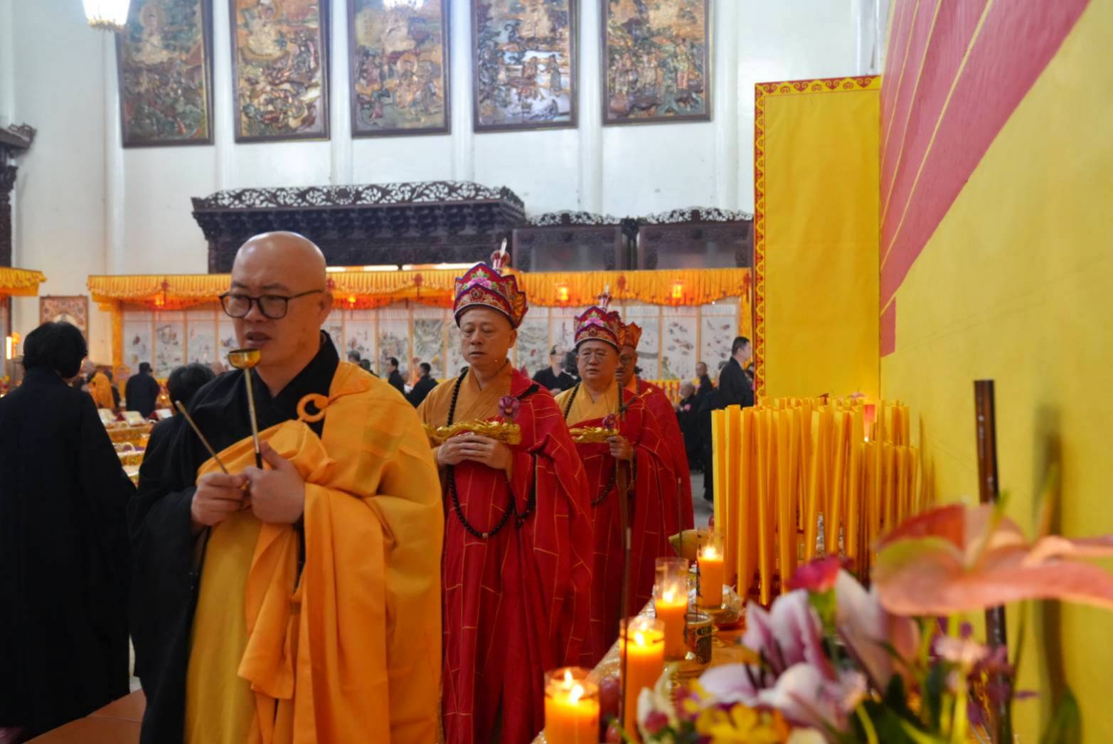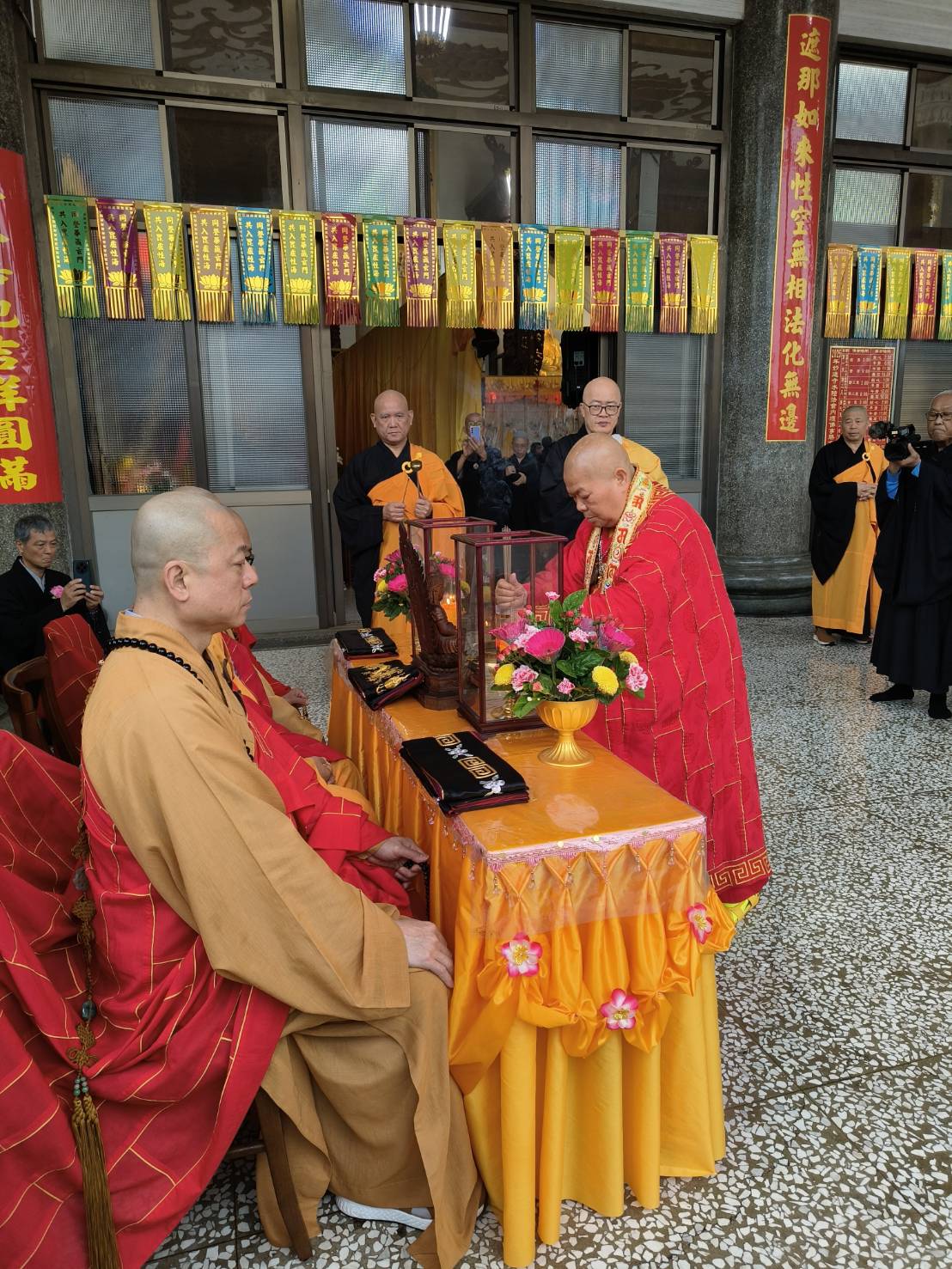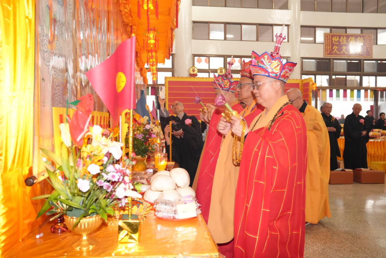 香燈引領齋主到法堂恭請金剛上師