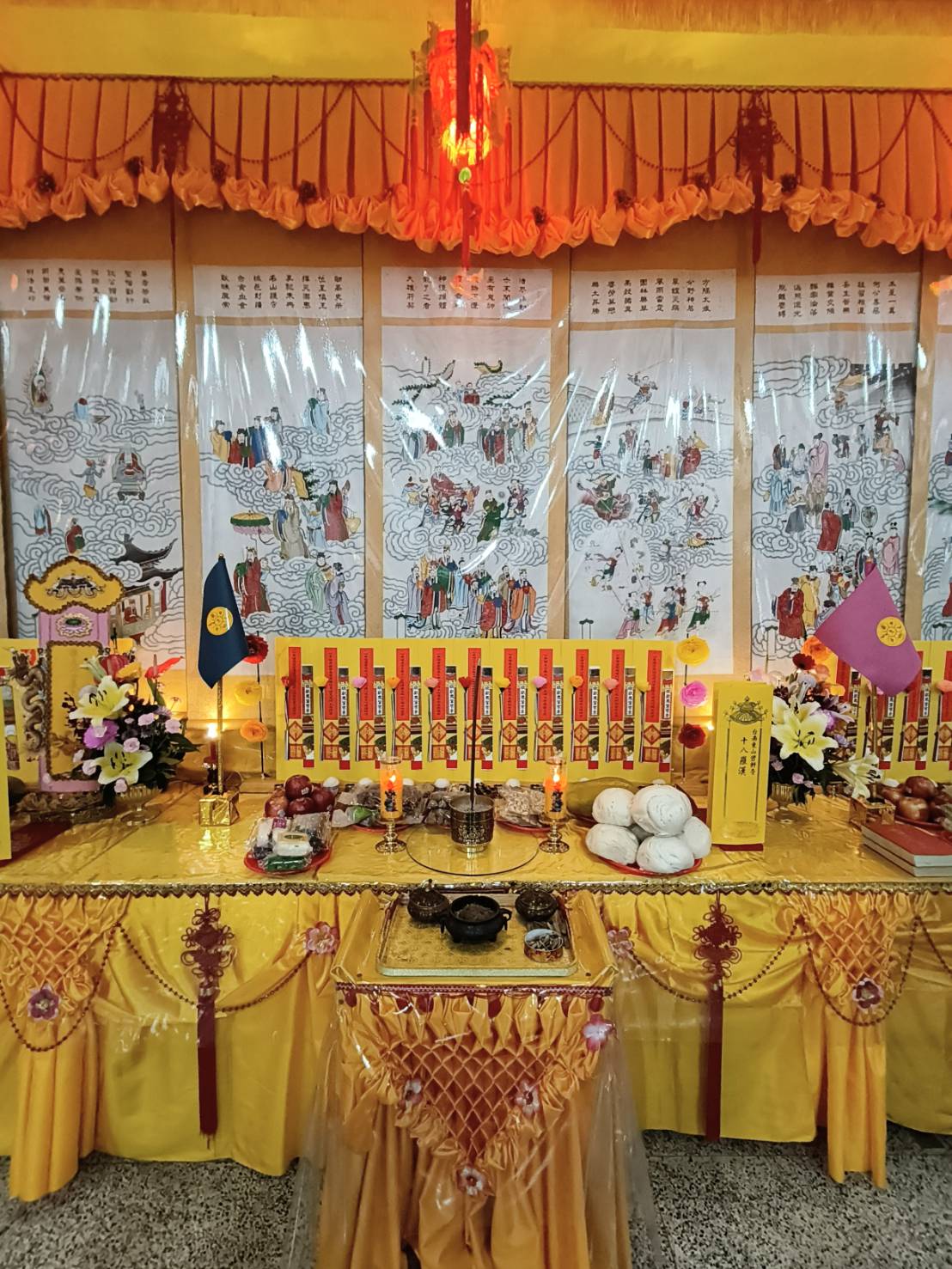 法師的桌椅、科儀、法器及齋主的科儀和拜墊,均向內安置。