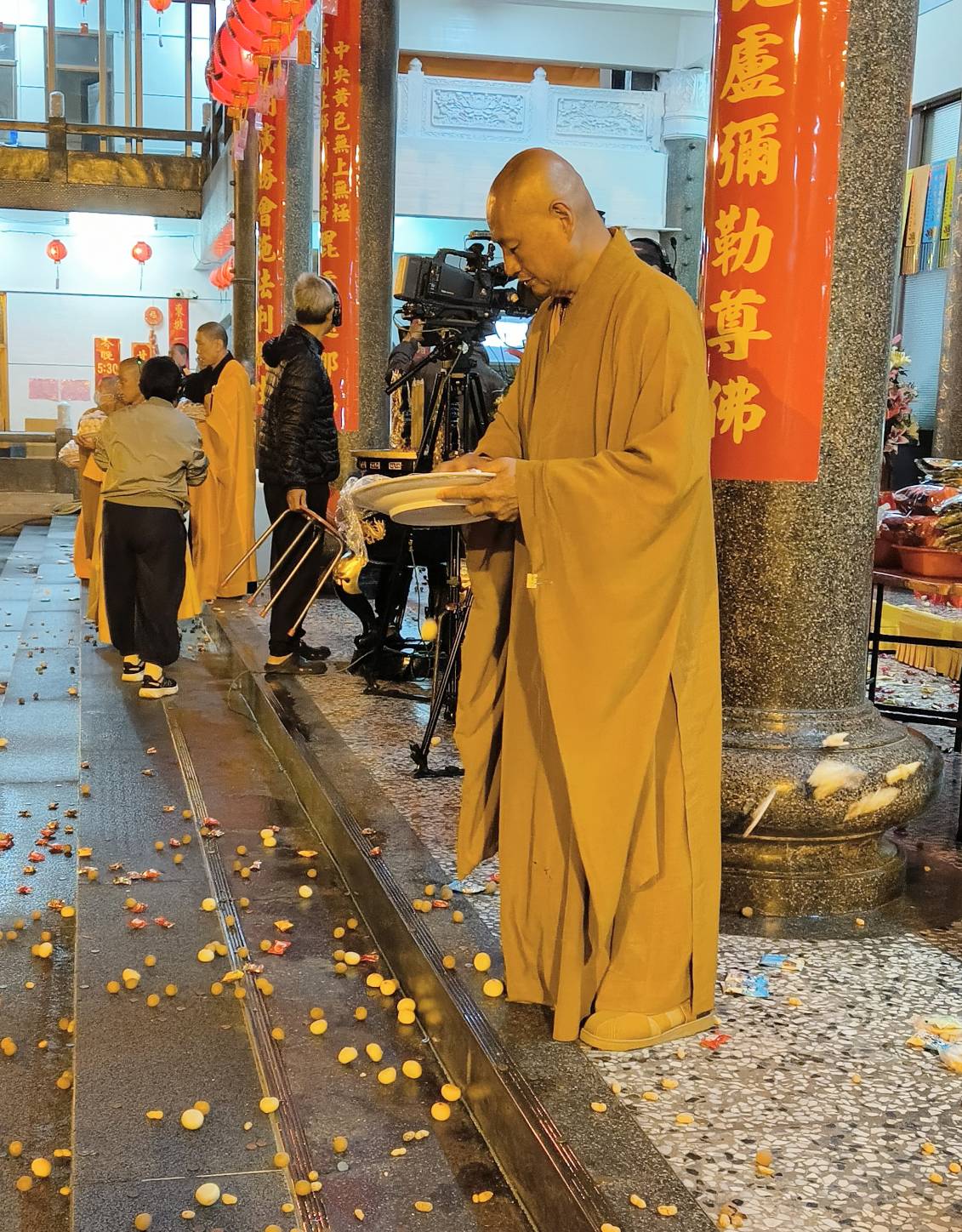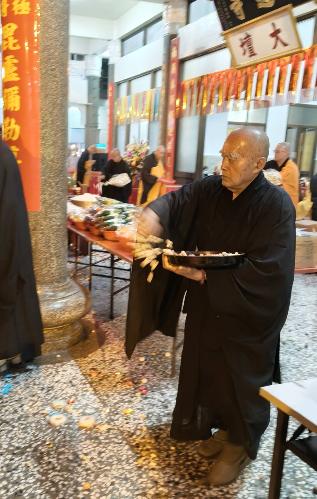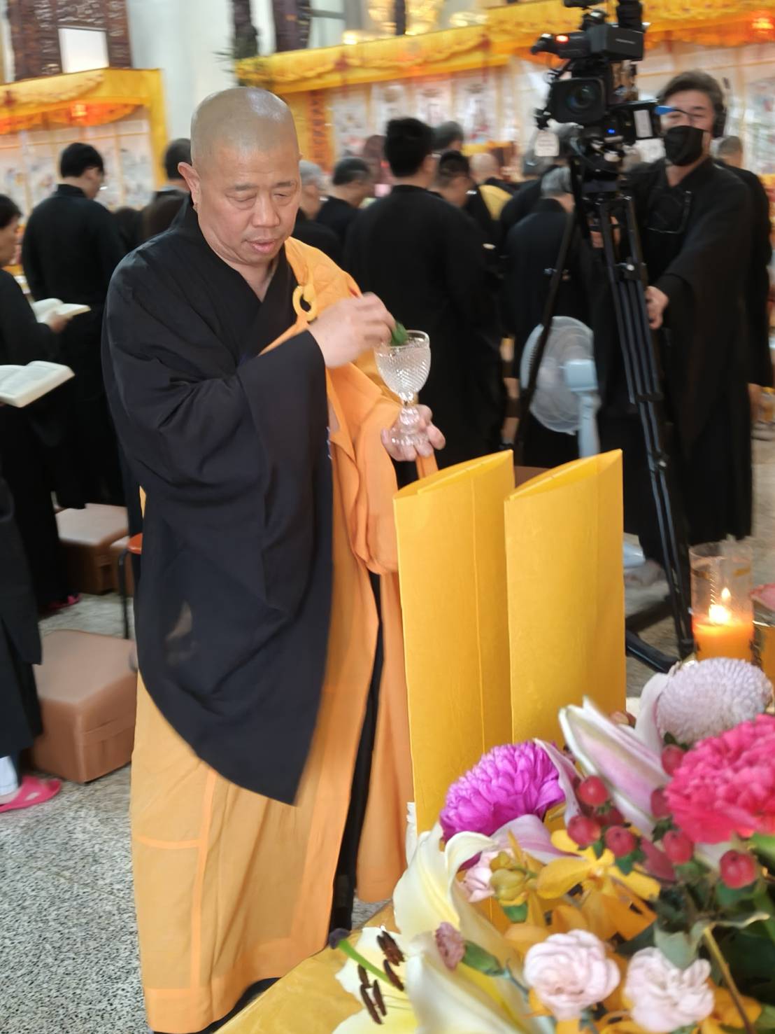 香燈以水灑淨於下堂14席