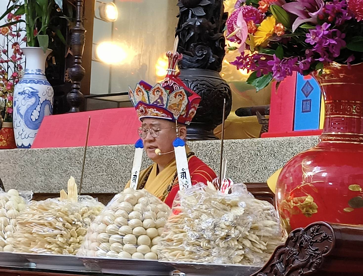 最後一堂焰口圓滿時化面然大士香案桌兩支蓮座