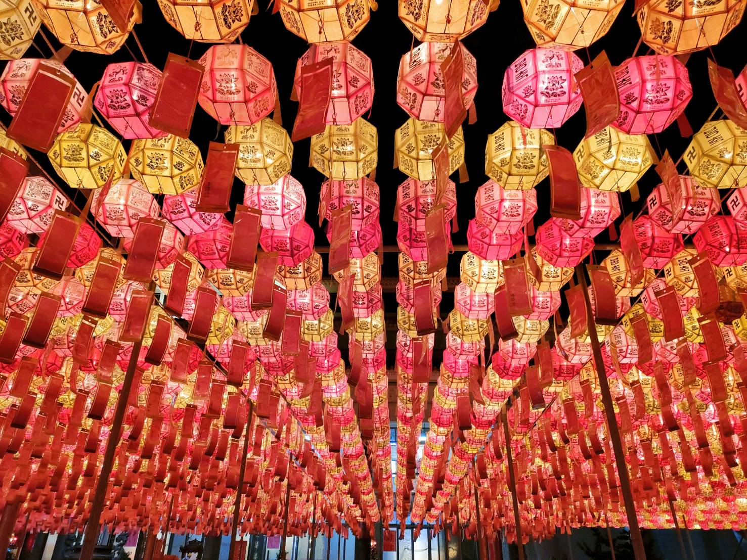 釋迦牟尼佛聖誕,本寺於毘盧寶殿前廊與廣場懸掛象徵光明智慧、喜氣祥瑞的蓮花燈。