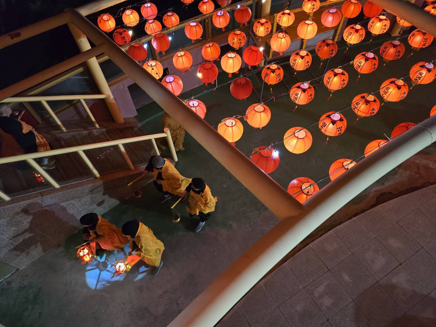 燈為十供之一,象徵光明與智慧,水陸法會期間點水陸燈,不僅供養諸佛菩薩,更是以一份善心讓十方法界一切群靈在幽暗中看到光明,法會現場層層排列的水陸燈海,宛如一顆顆善心交織而成的橋樑,祈願此界他方,情與無情,藉此水陸法會殊勝功德,共入佛法智慧大海,悉發菩提心,皆共成佛道。
