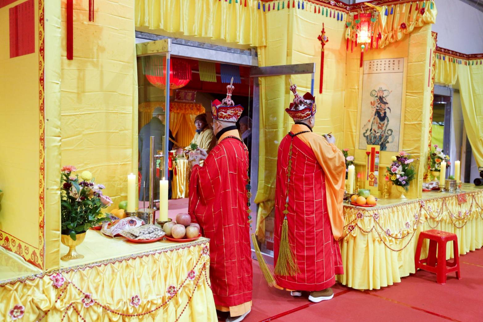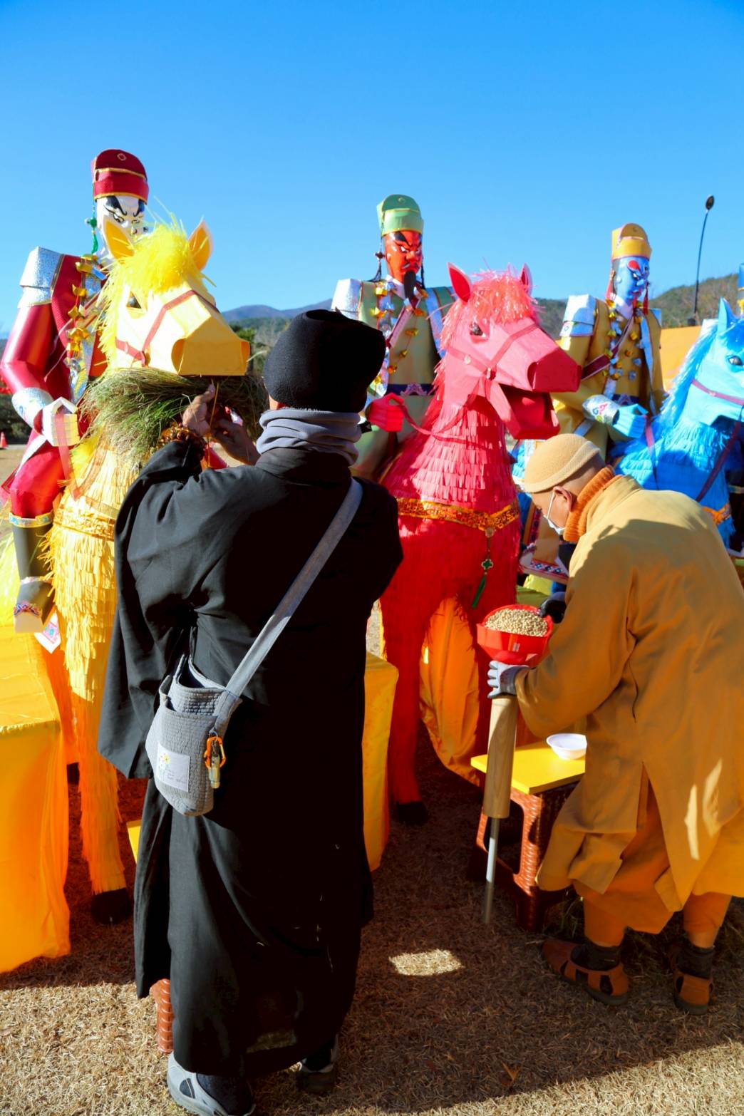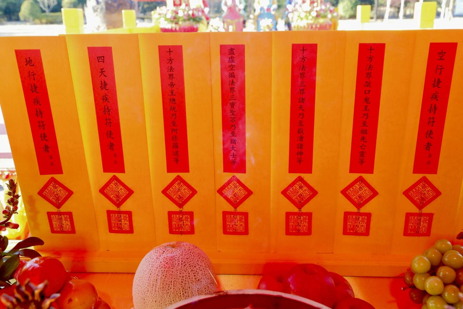 四尊持符使者與馬匹就位,準備供持符使者的供品、馬匹糧草及大悲水。