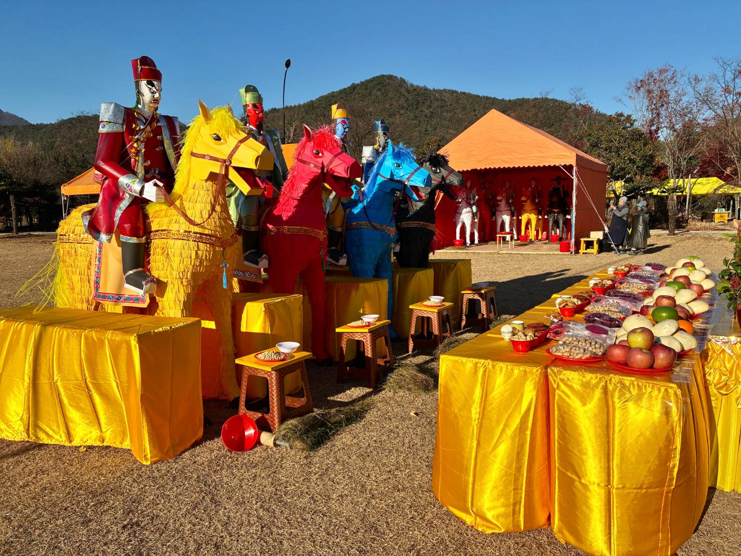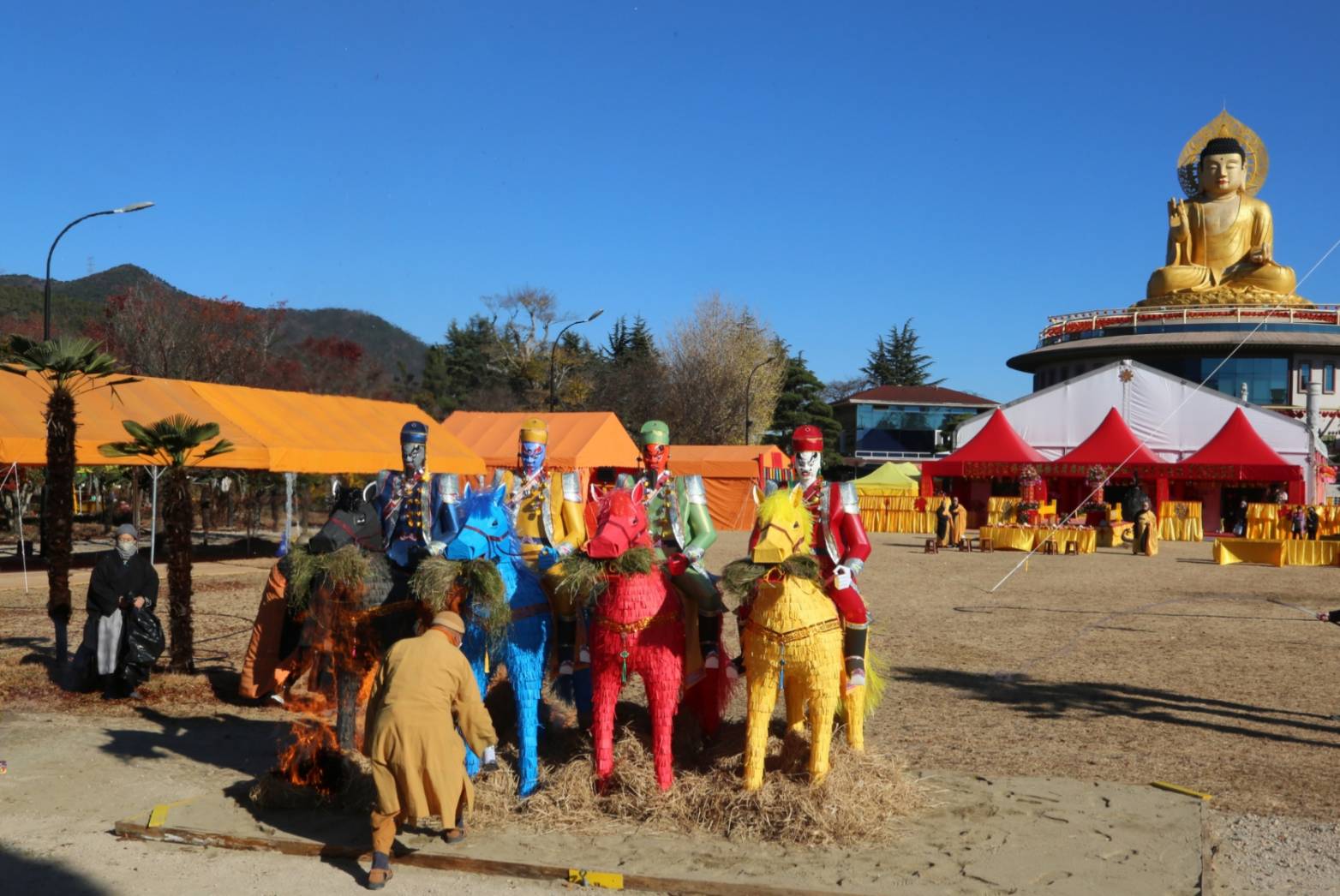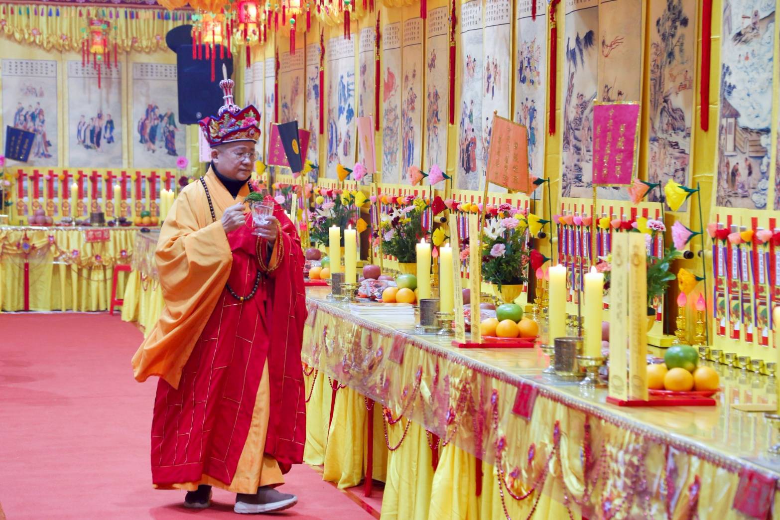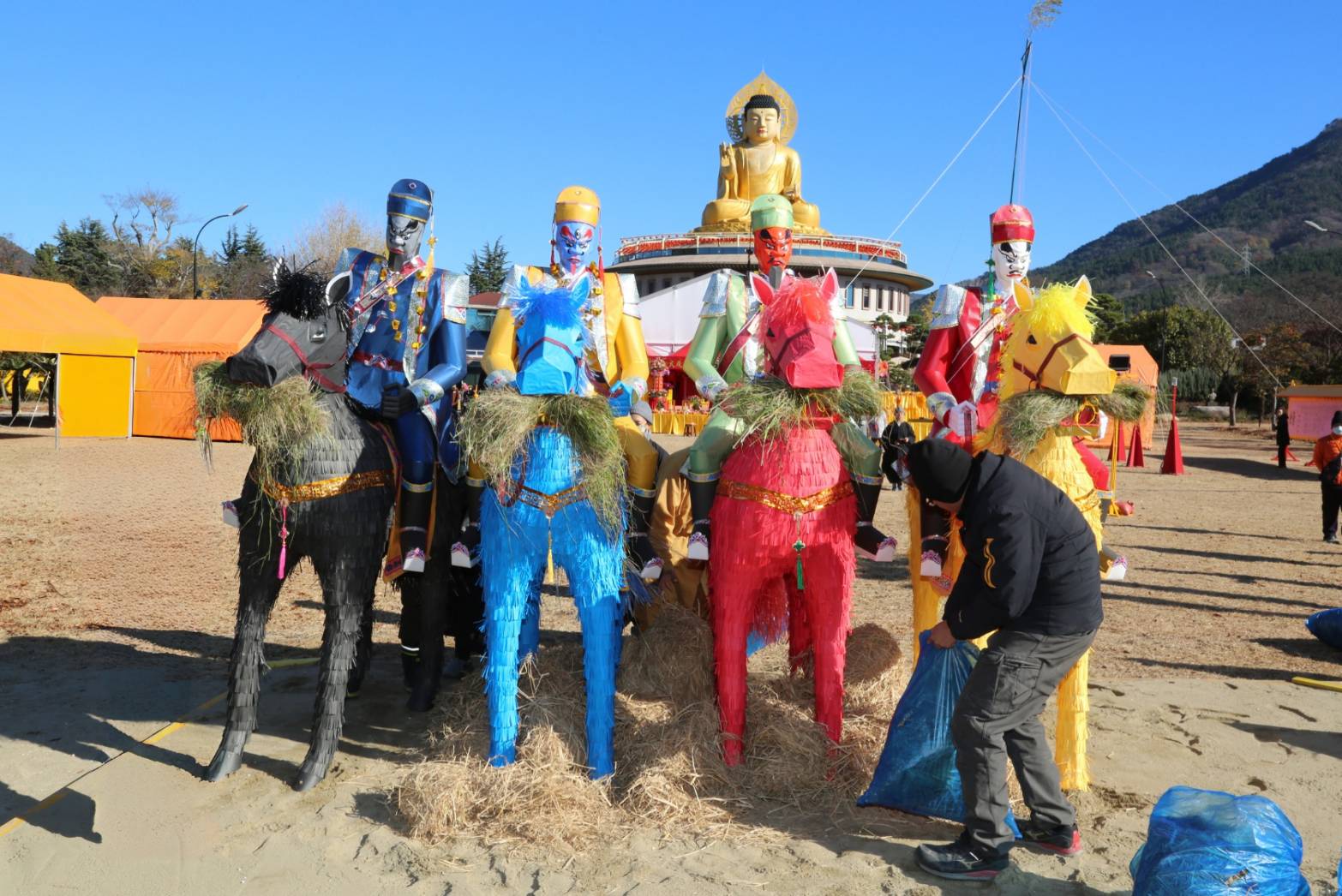四尊持符使者與馬匹就位,準備供持符使者的供品、馬匹糧草及大悲水。
