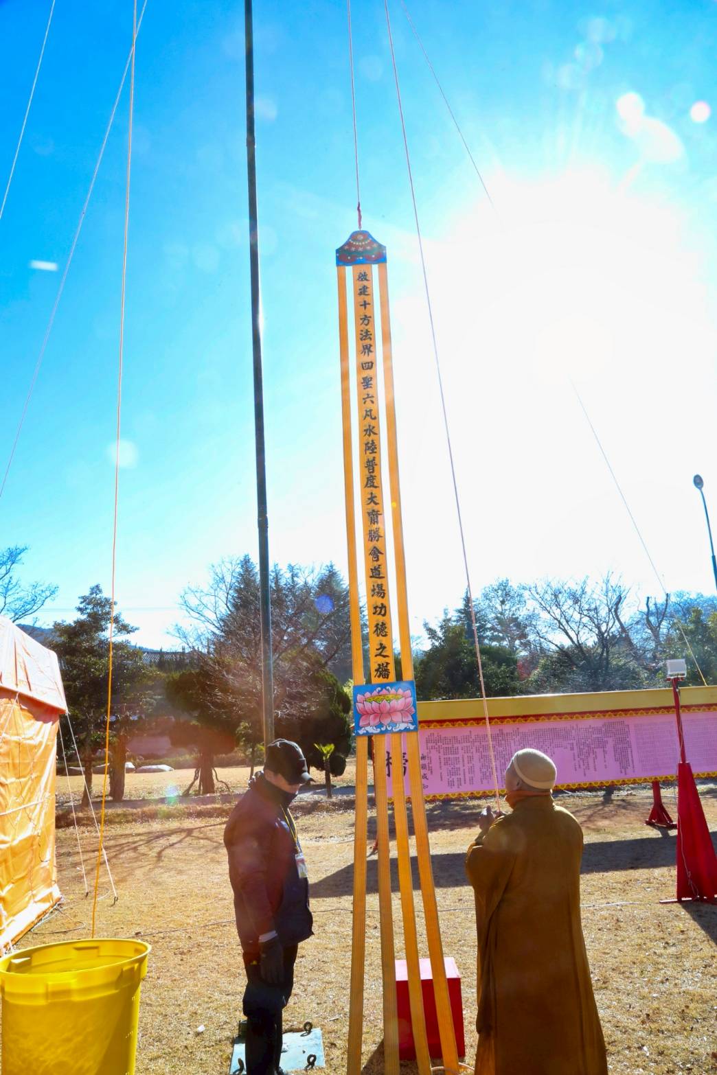 上來發符圓滿。茲當升揚寶幡。