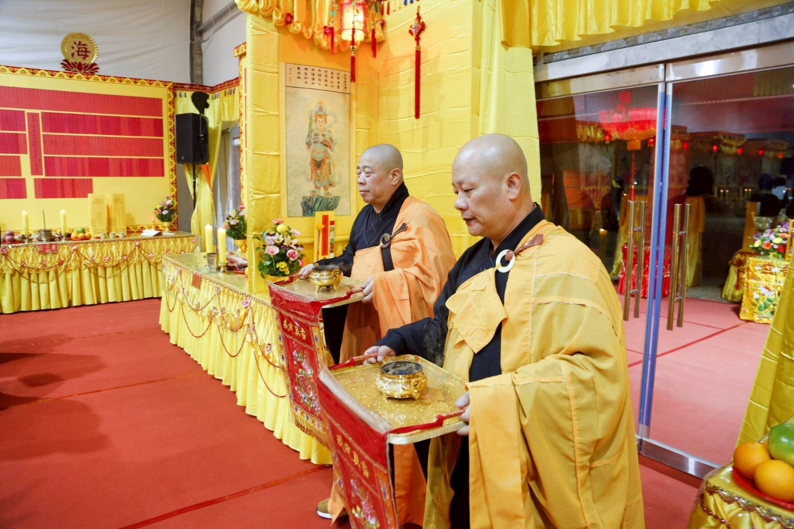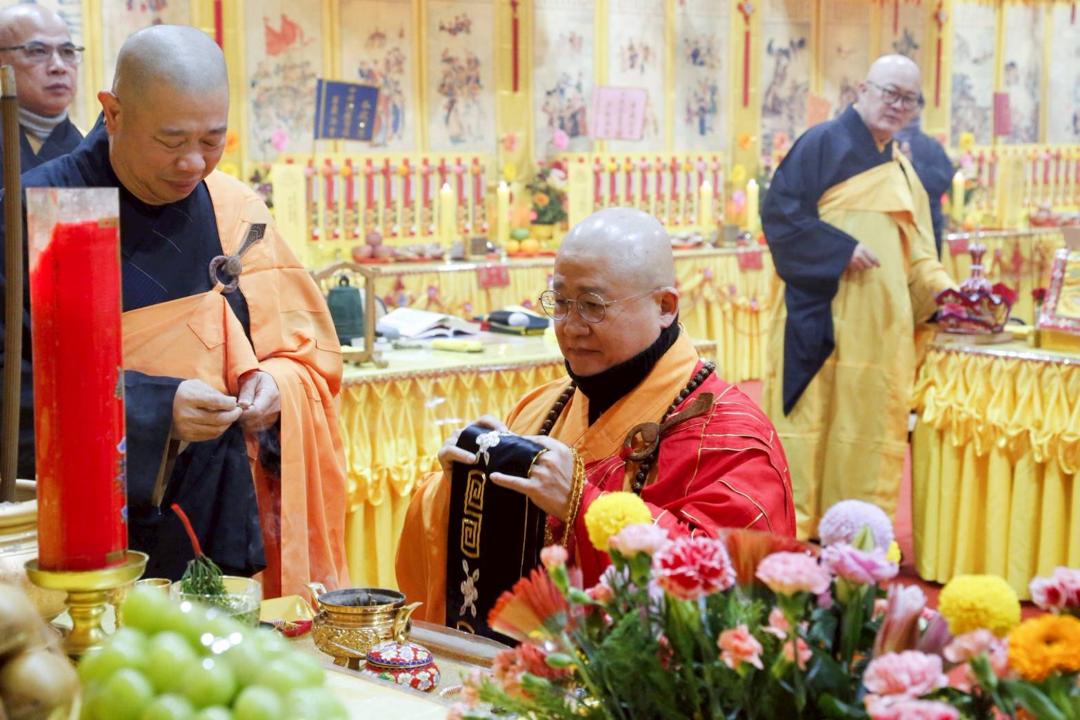 三位主法和尚依序在天香几香案拈香