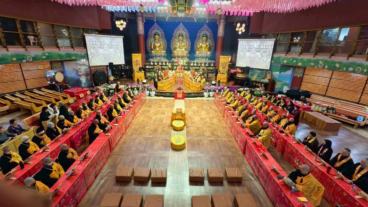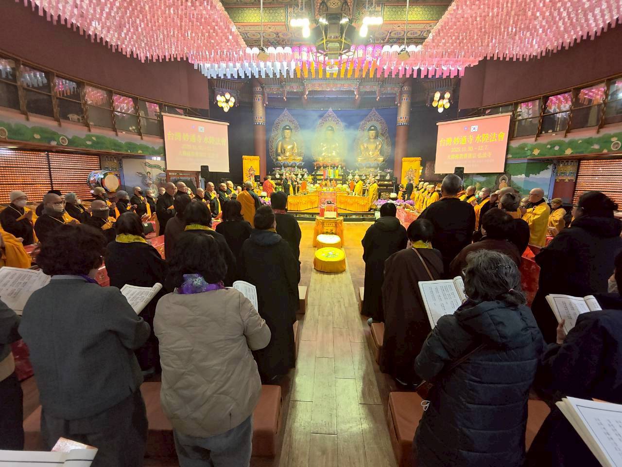 點榜圓滿,傳敦師父與內壇法師和四眾弟子合影。