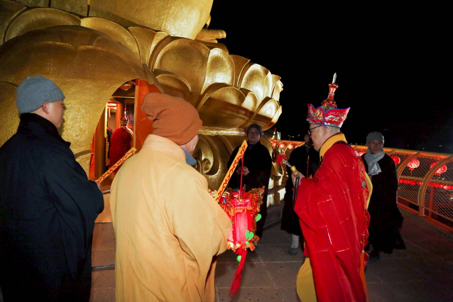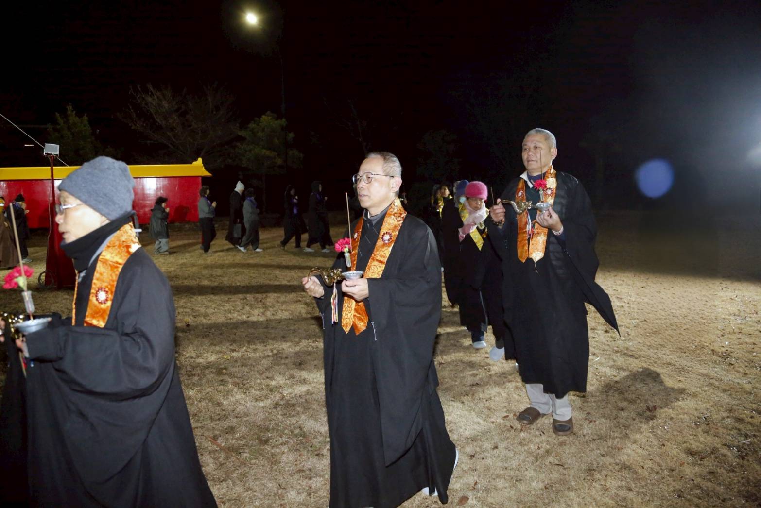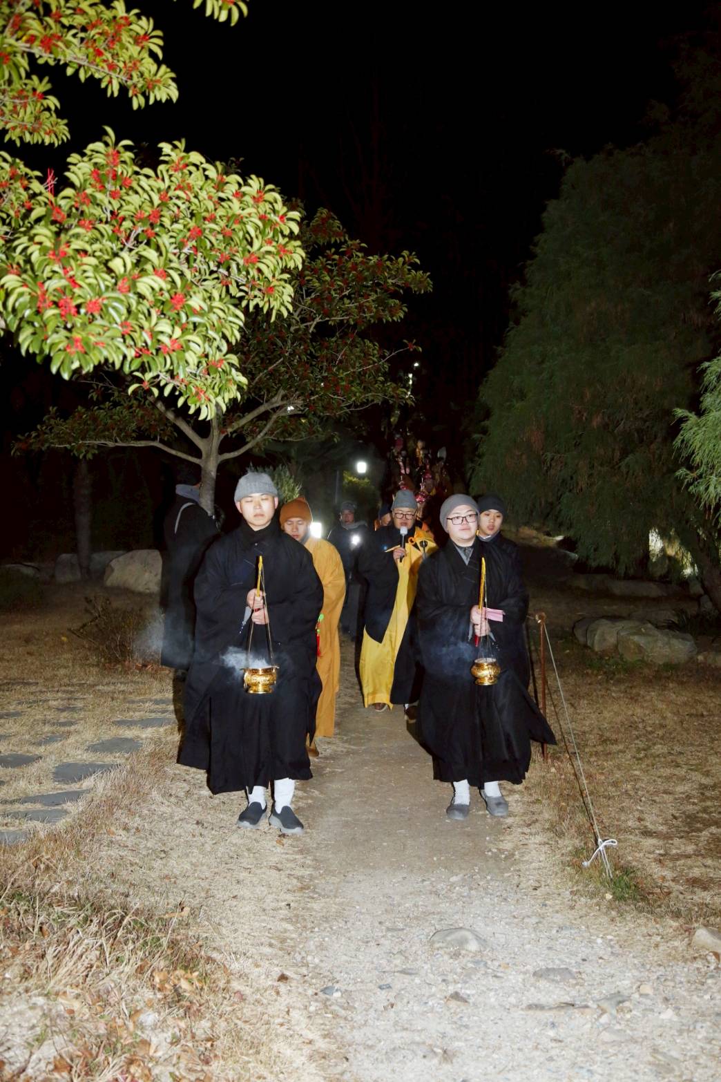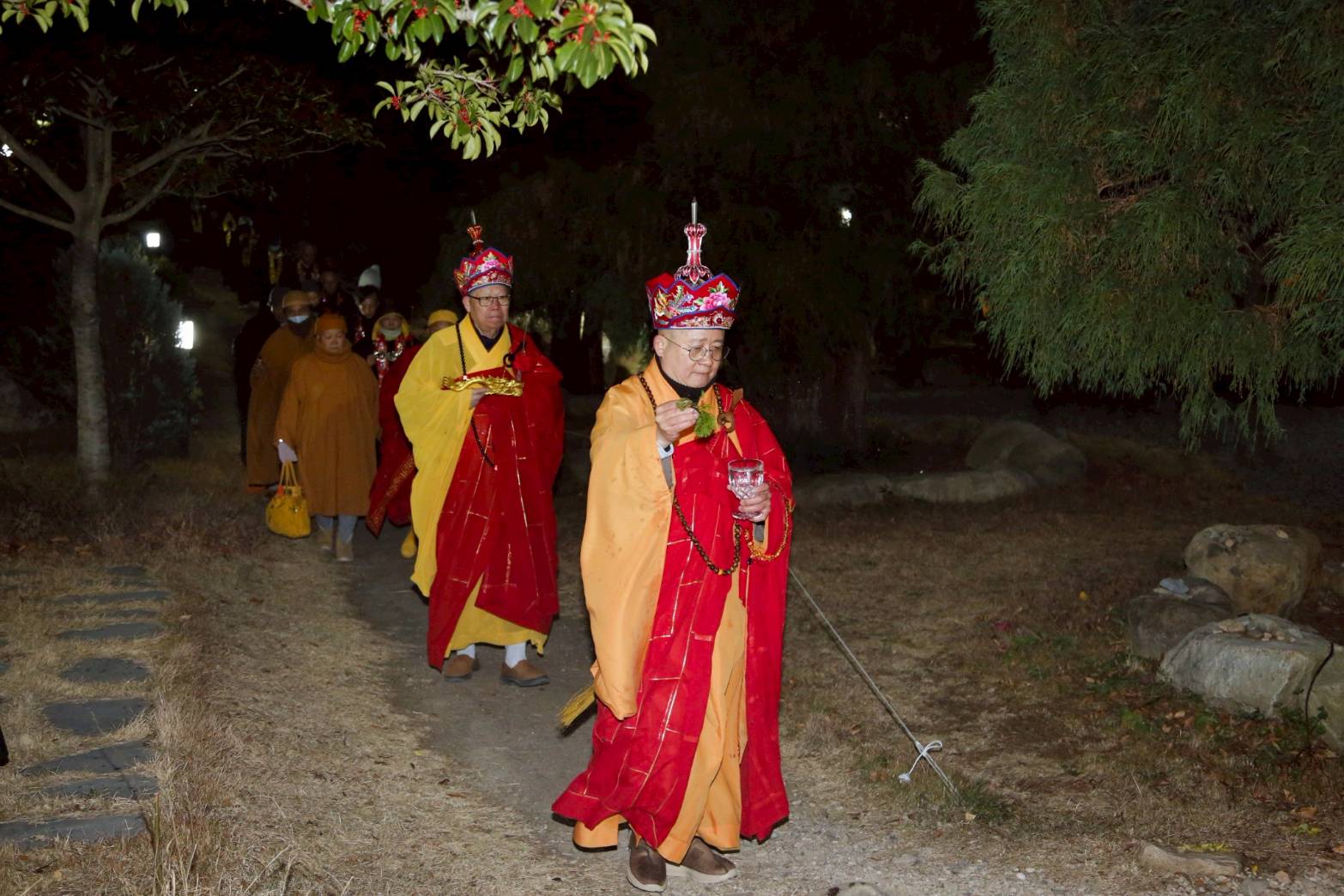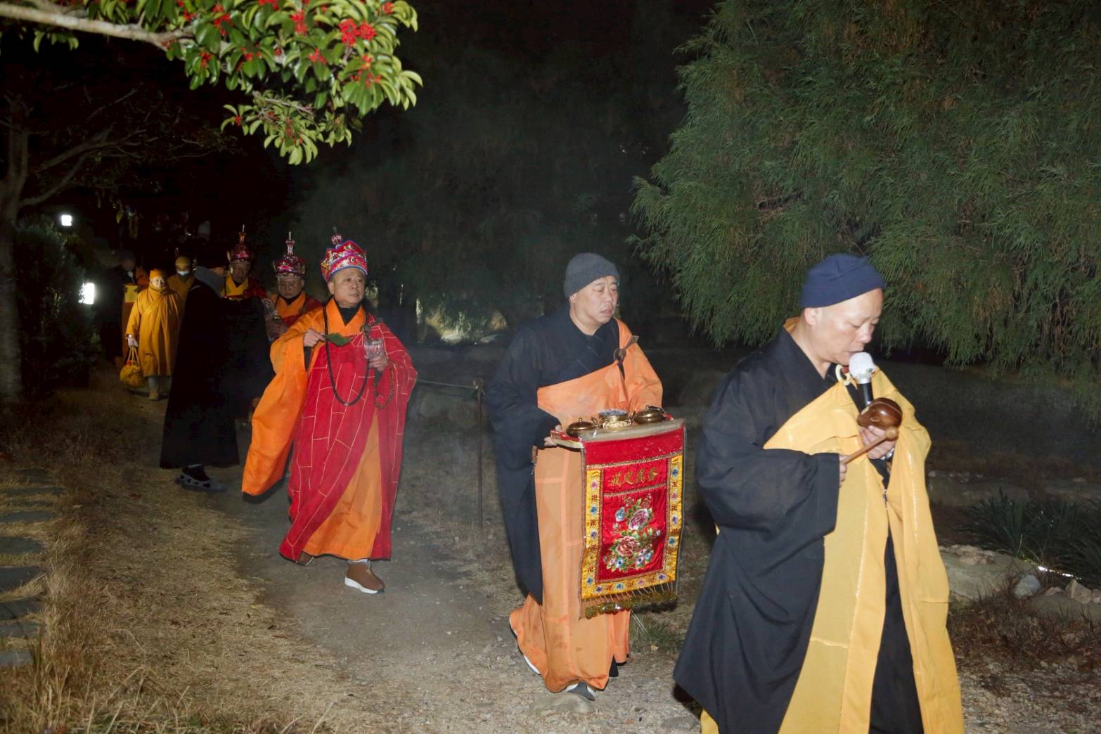 兩位出家眾提燈、兩位出家眾提爐,在前引導。