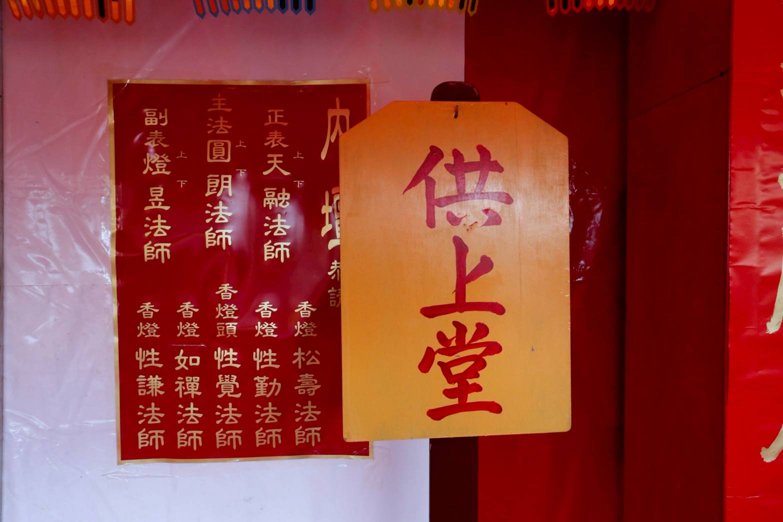 壇前門上掛請聖幡10首,幡上書10席總名,需依儀文位次,切勿錯亂。