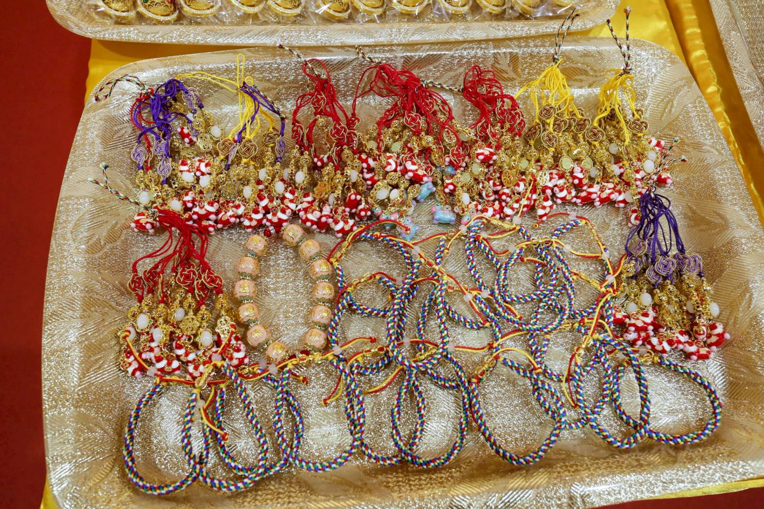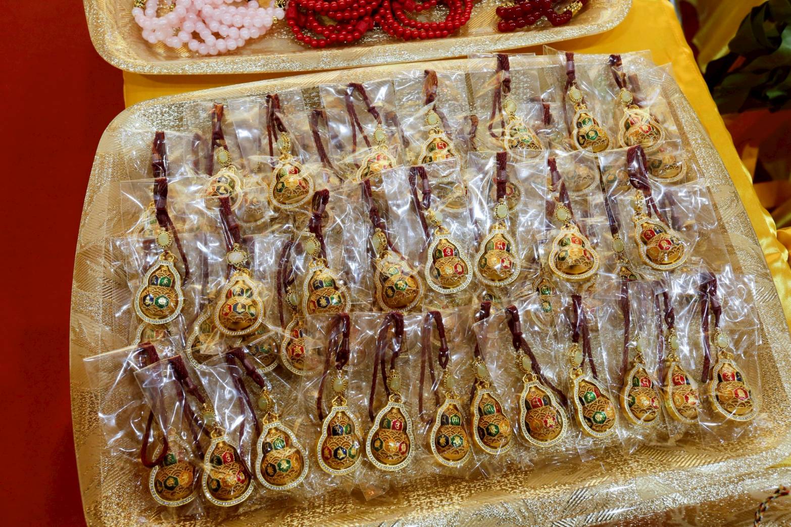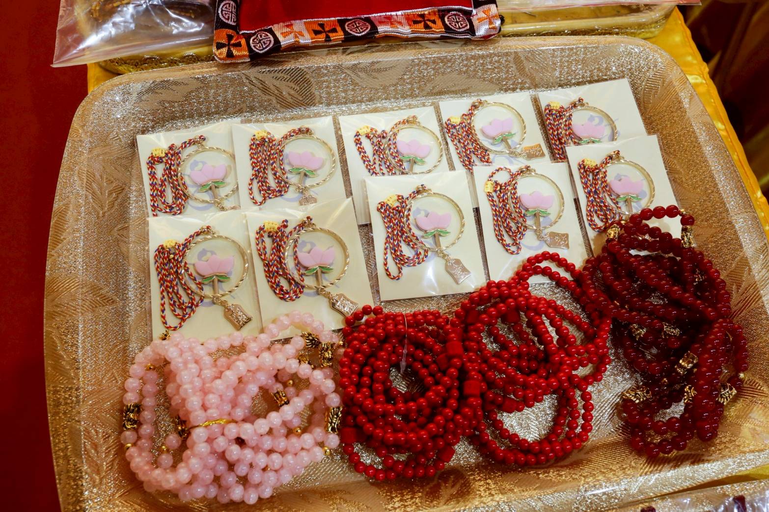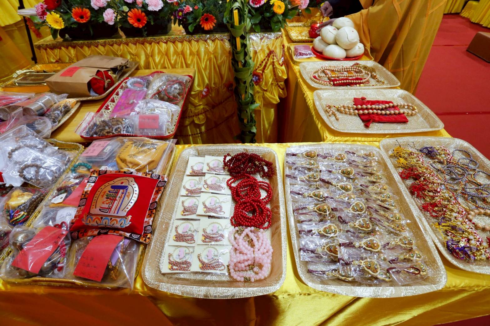 備六塵妙供,與大眾師、信徒所供養法寶與紅包等置普供桌旁。