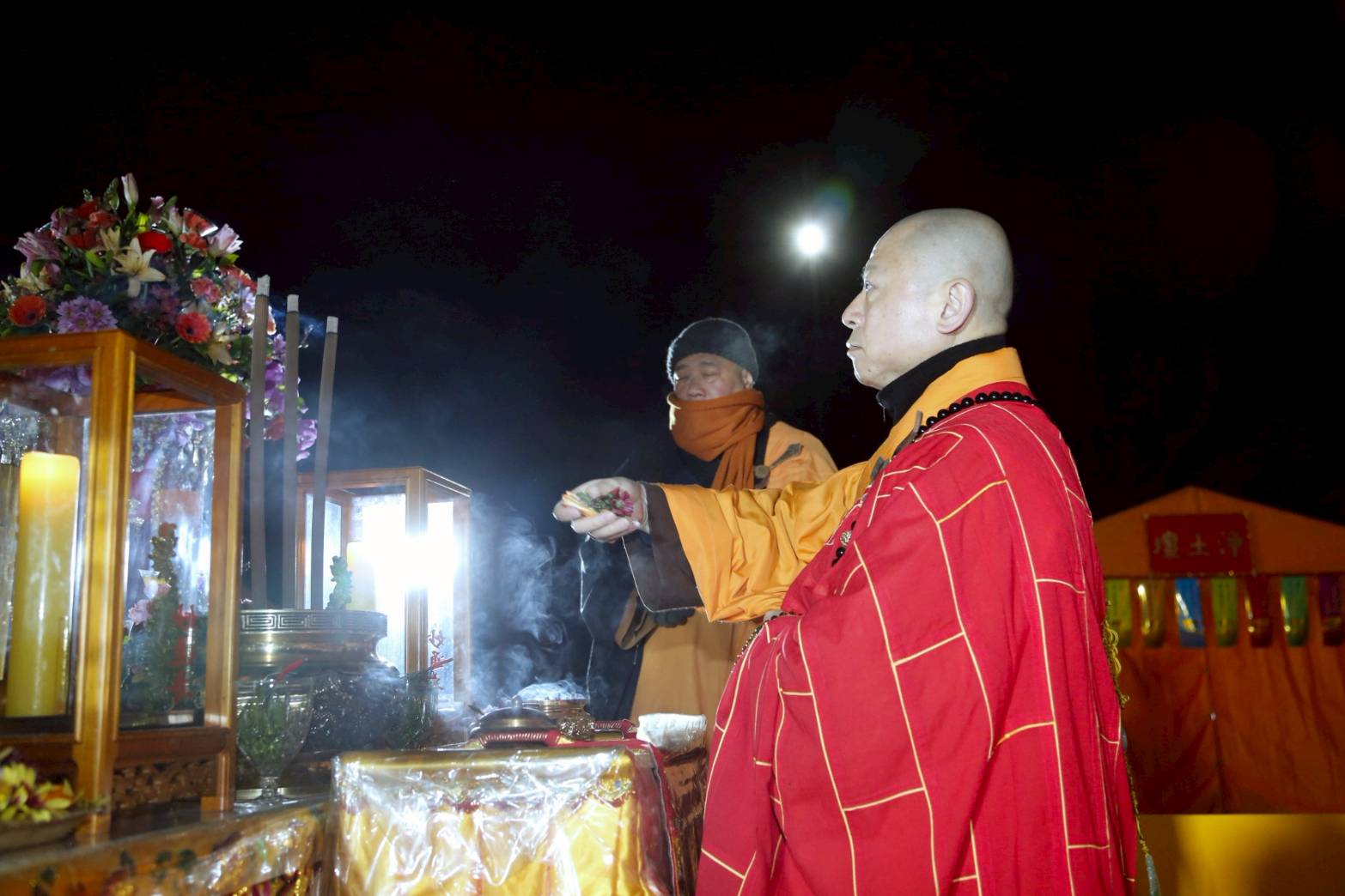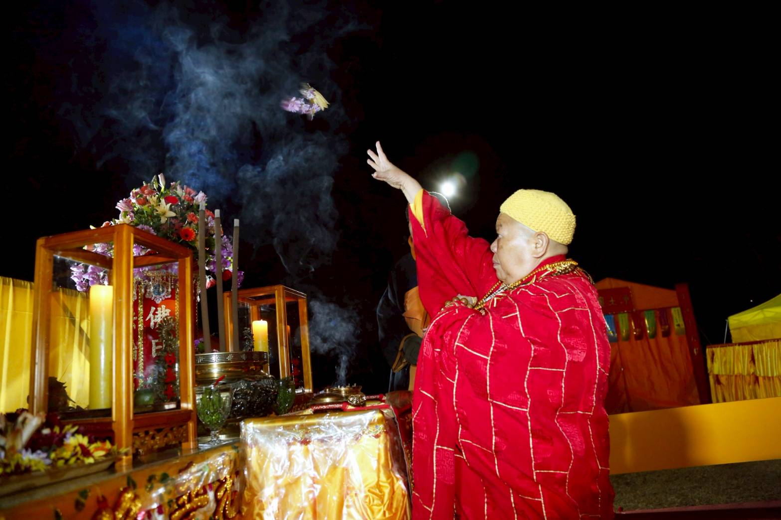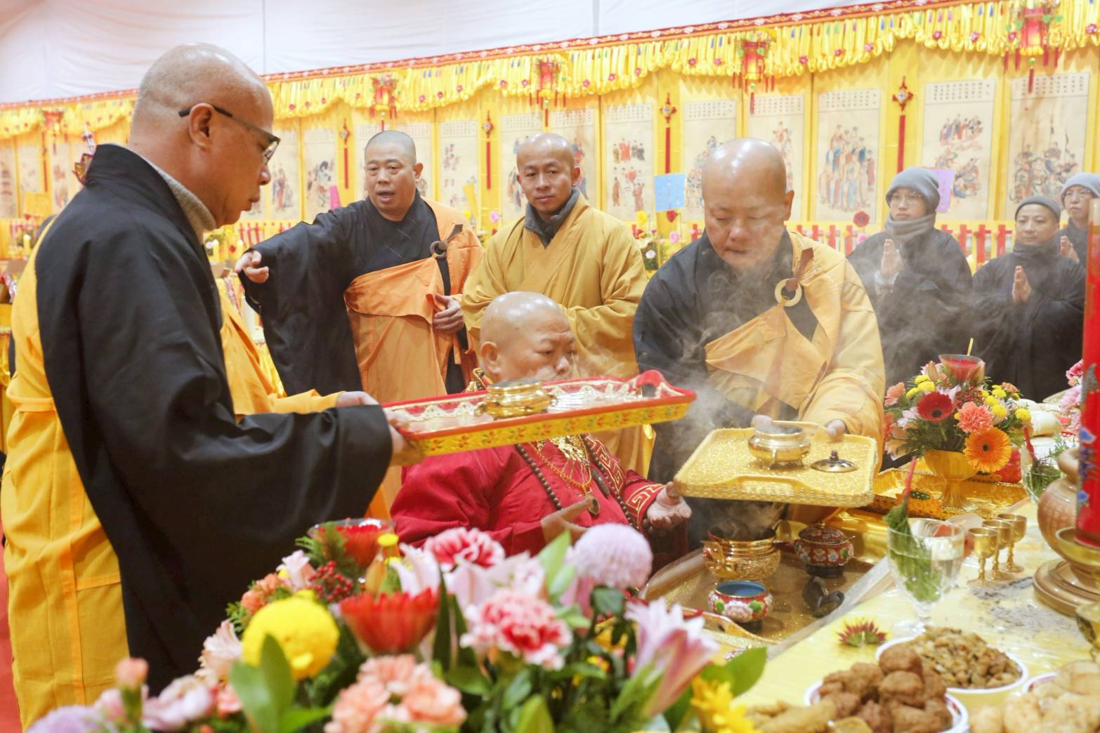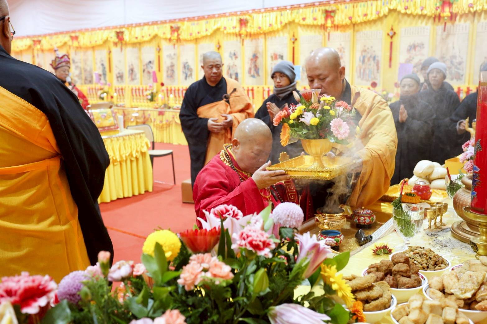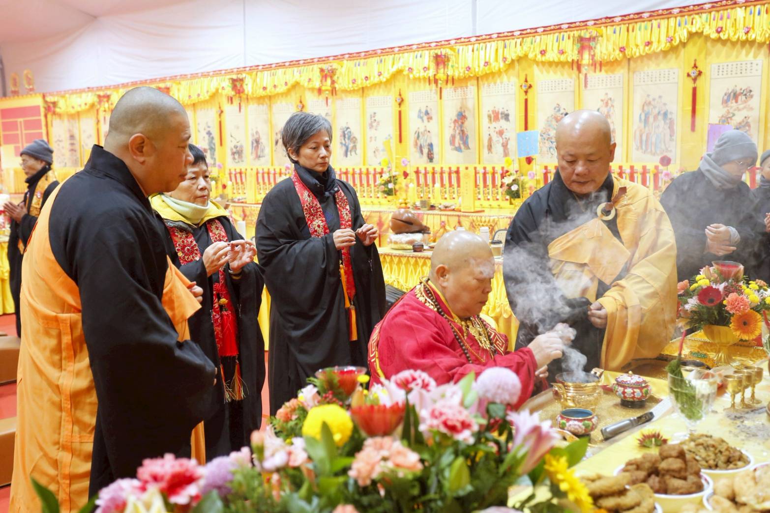 主法和尚拈香散花後設拜