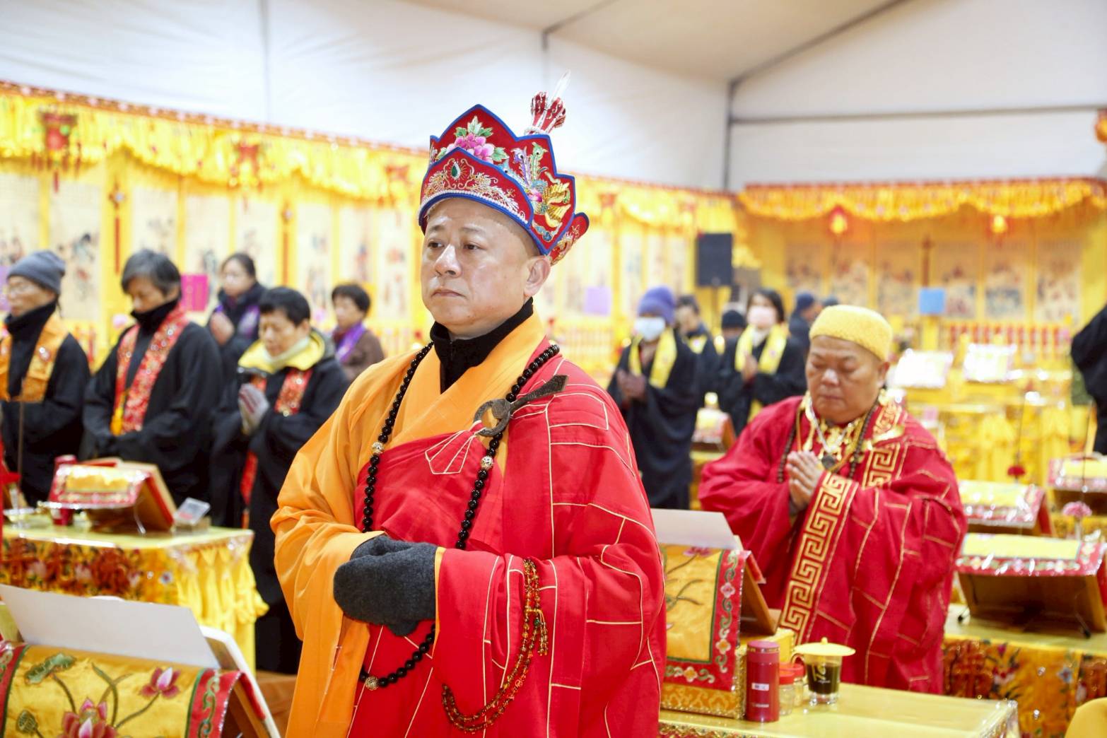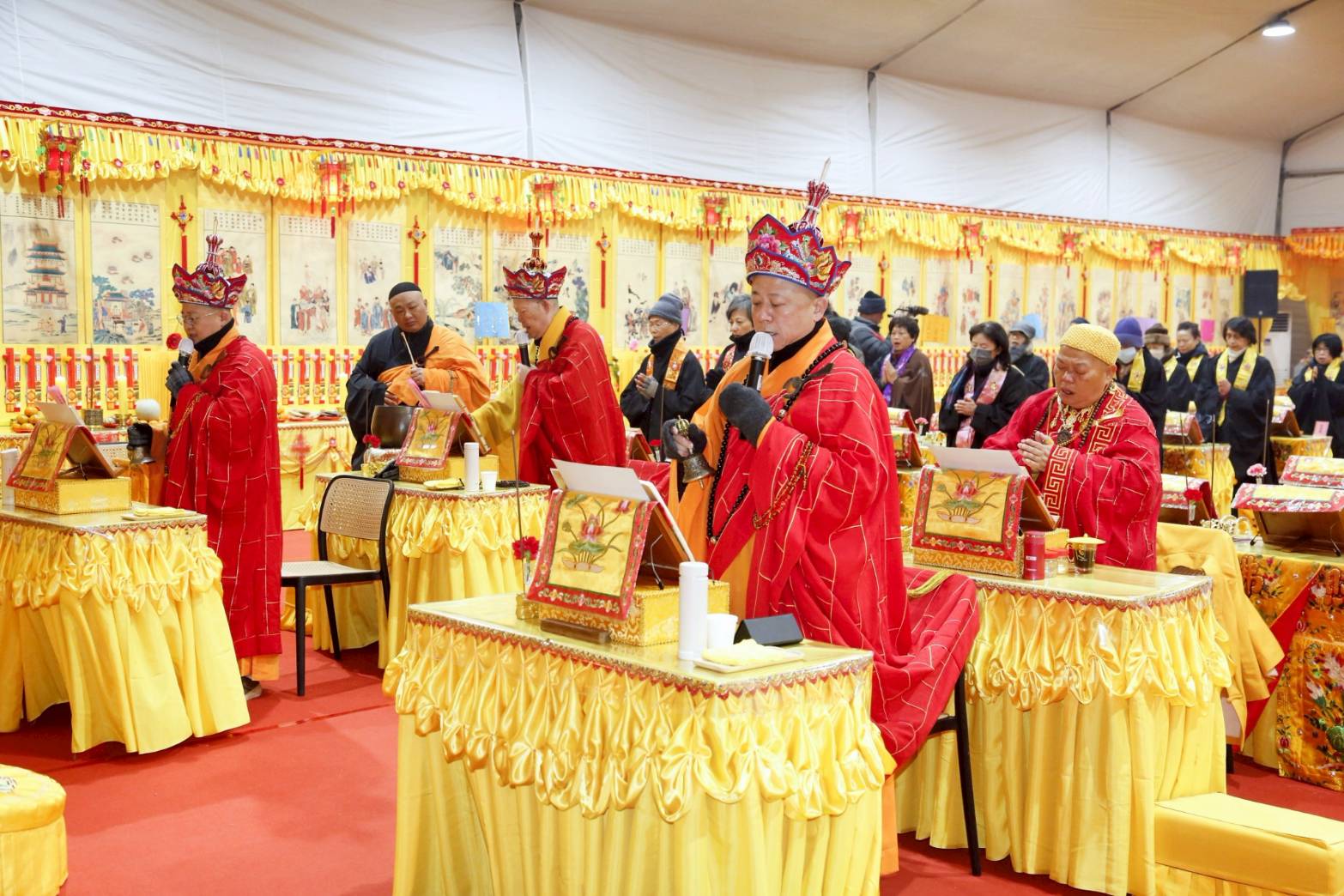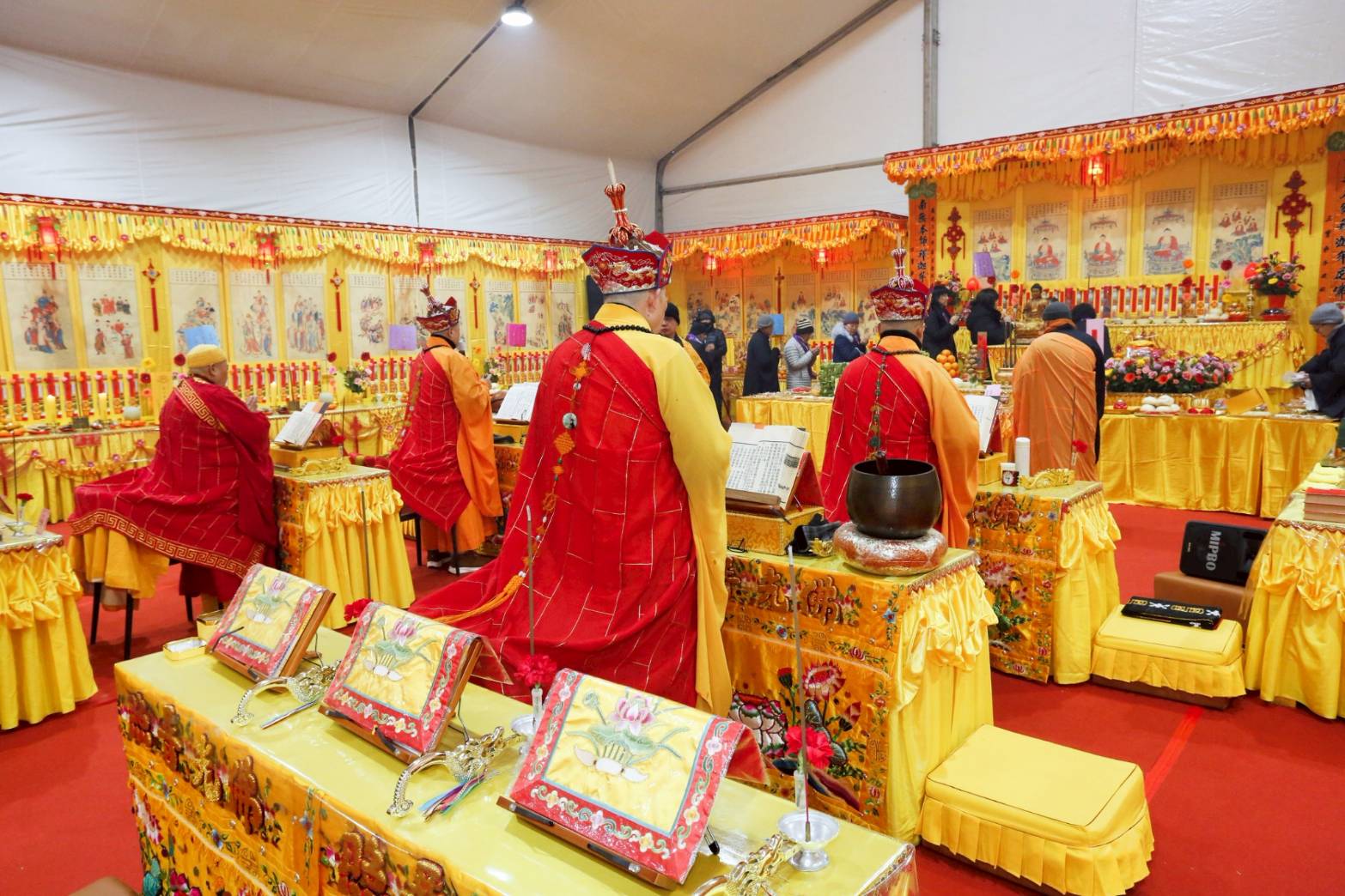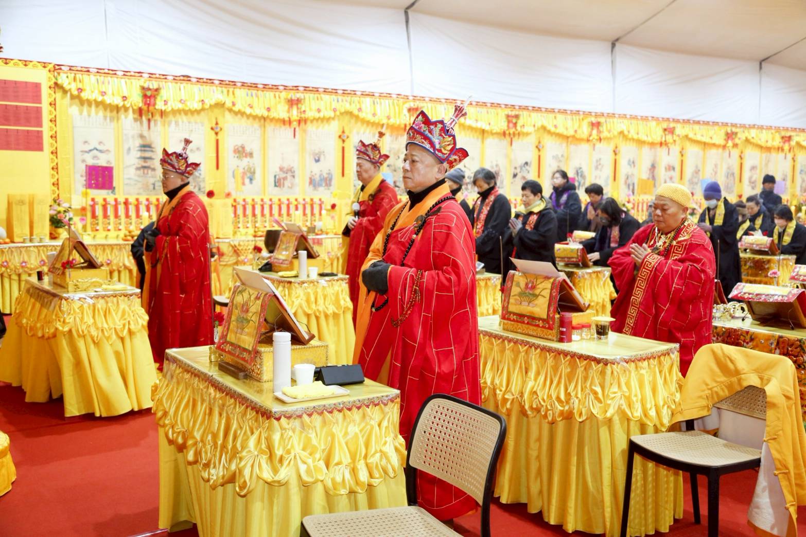 法師的桌椅、科儀、法器及齋主的科儀和拜墊,均向外安置。