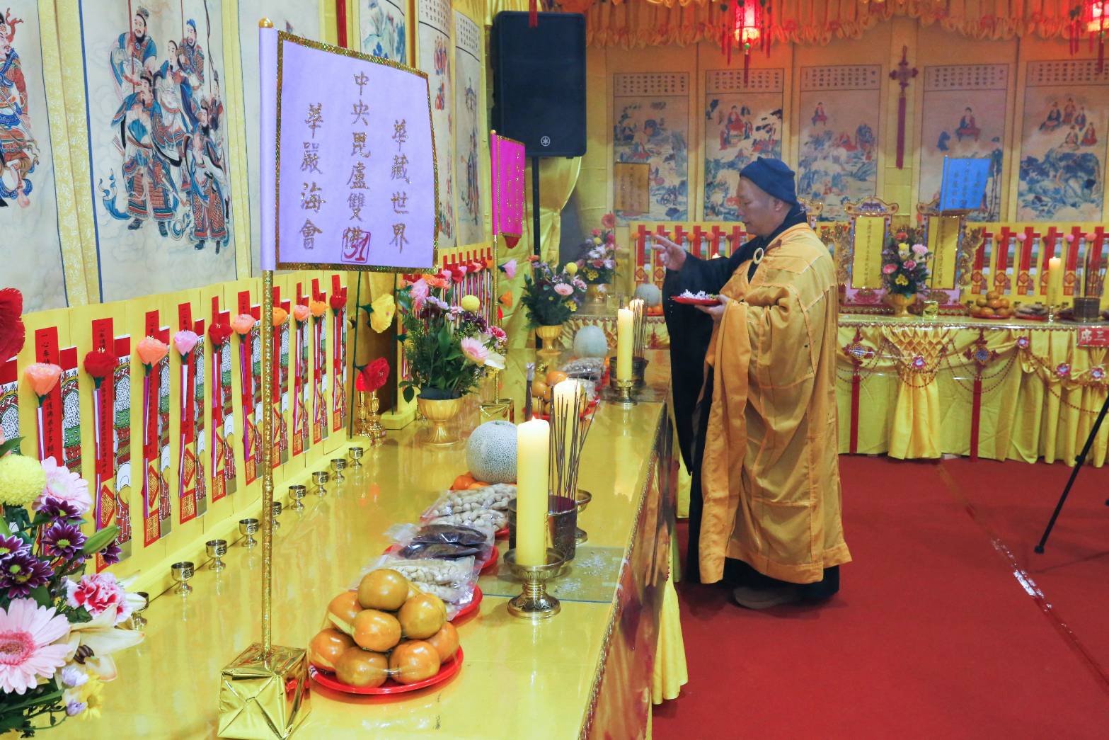 拈香畢,歸位。接著獻六塵供。