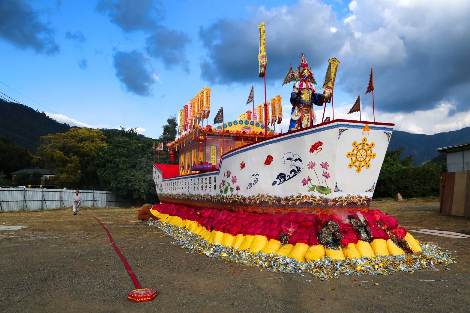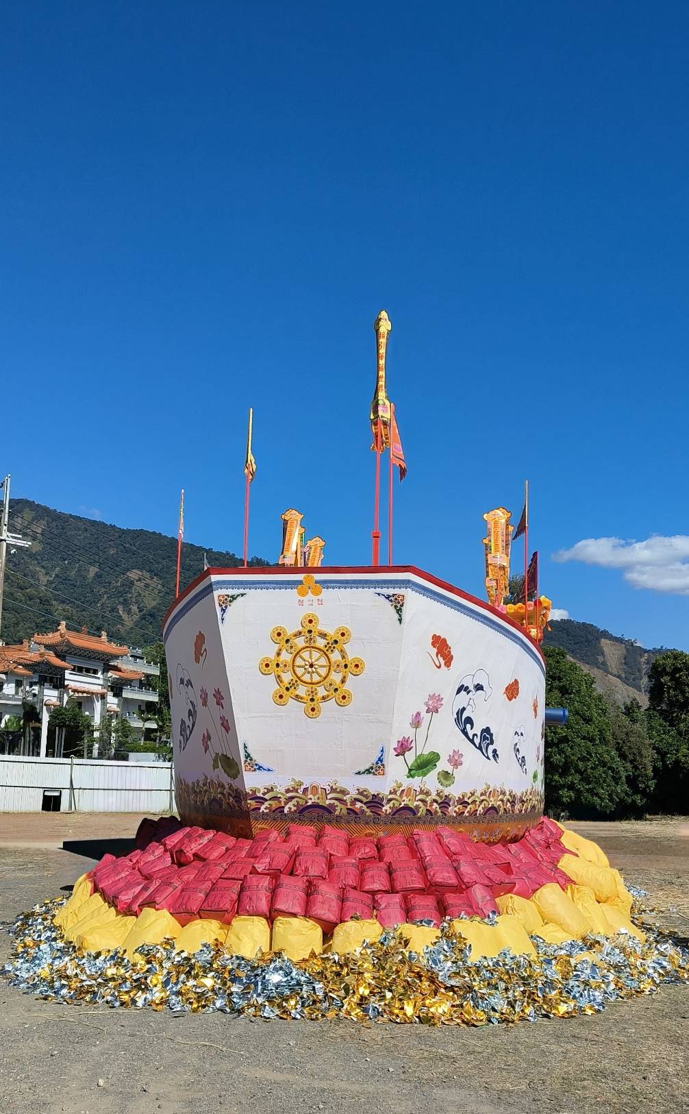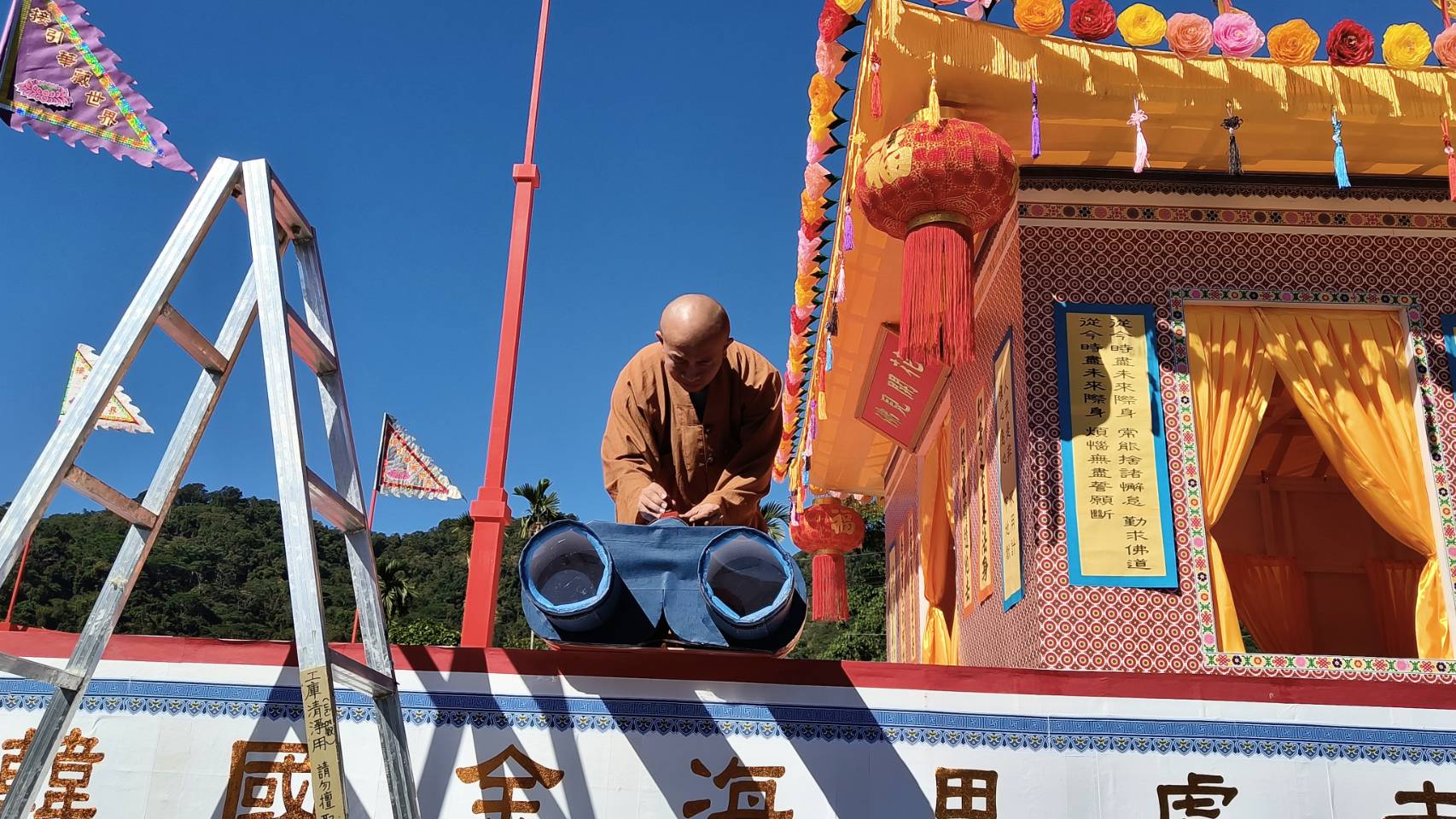 第二層船體插佛號幡。