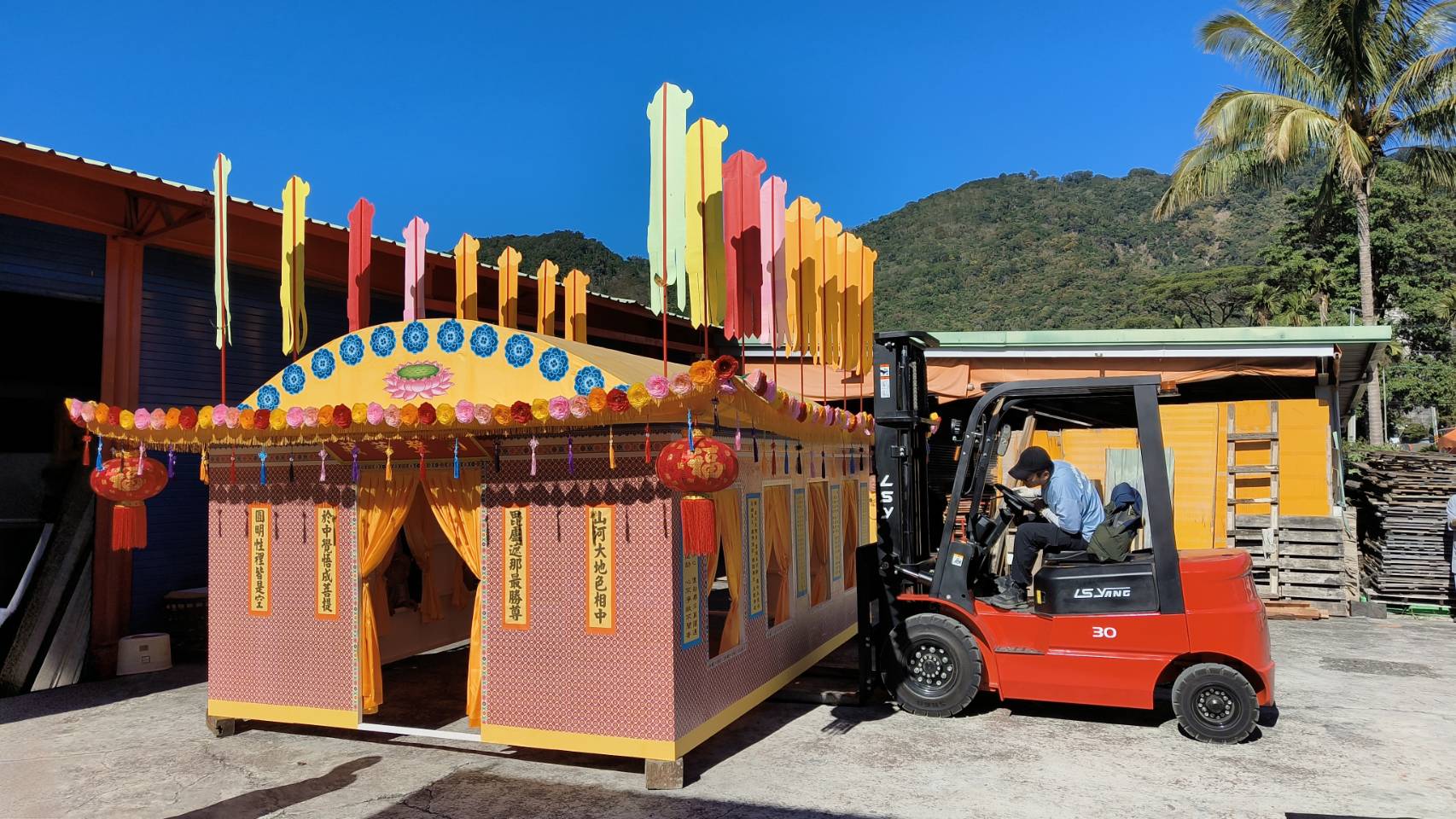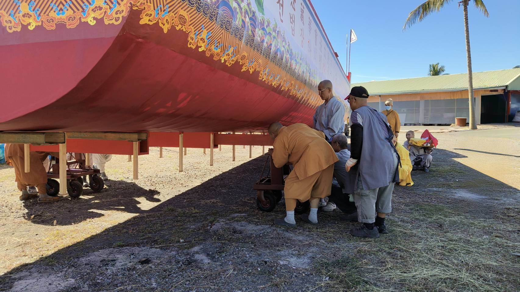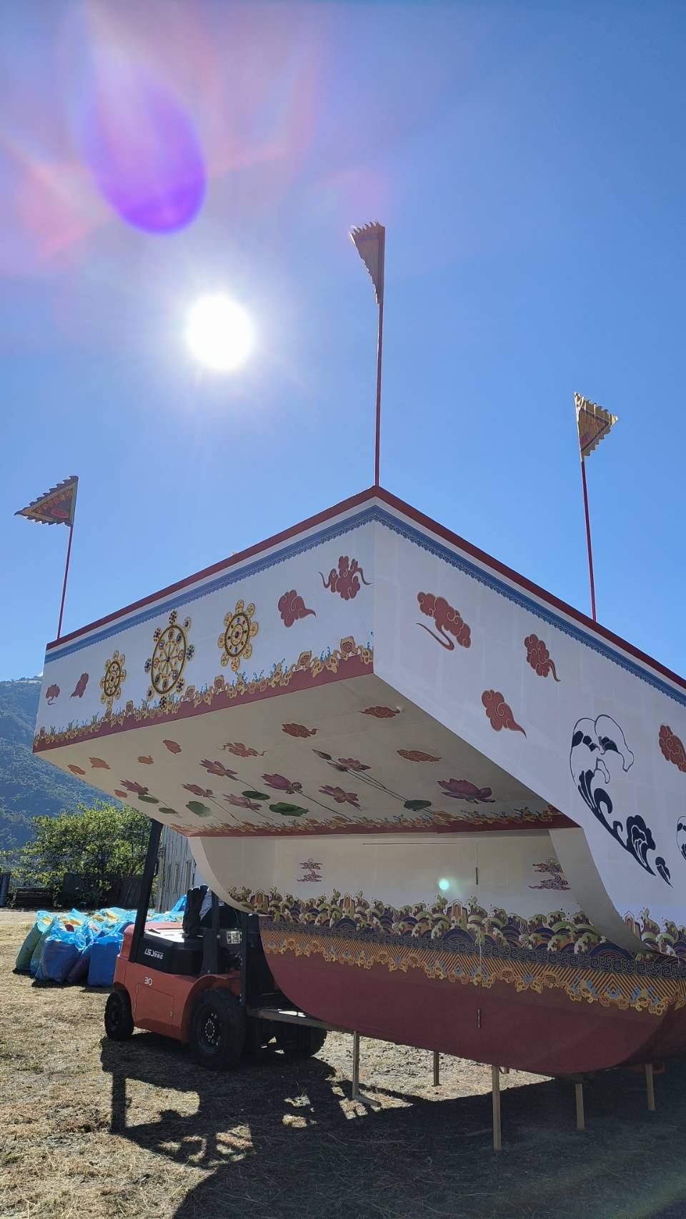 第二層船體插佛號幡。