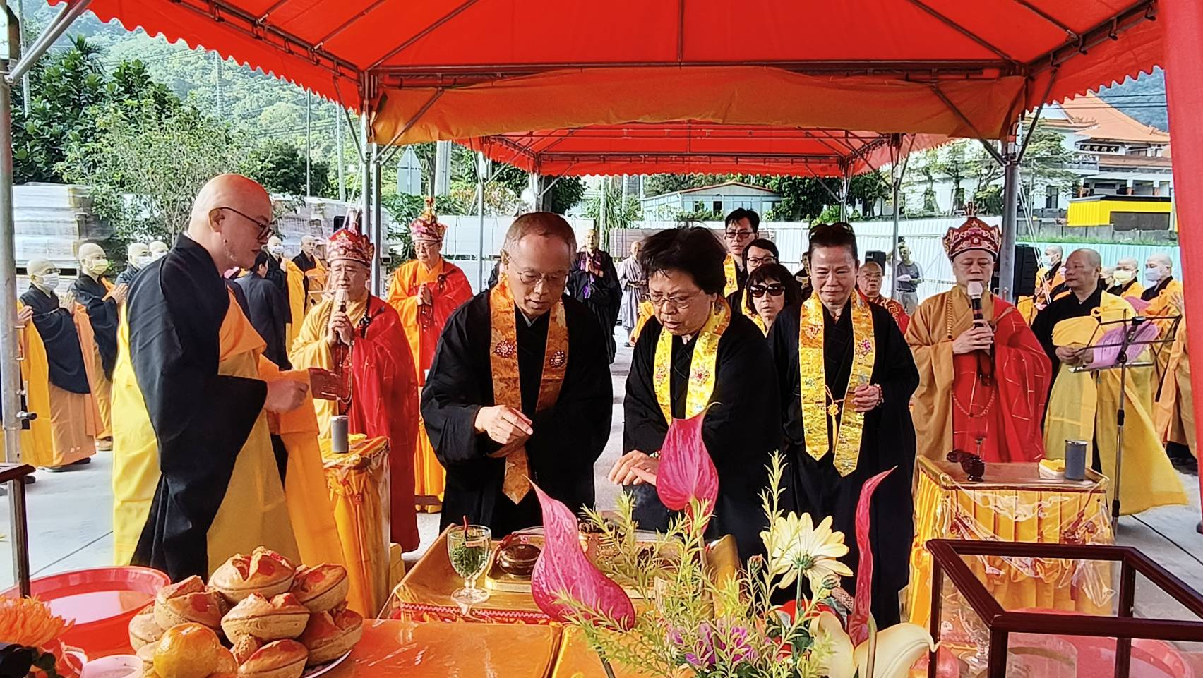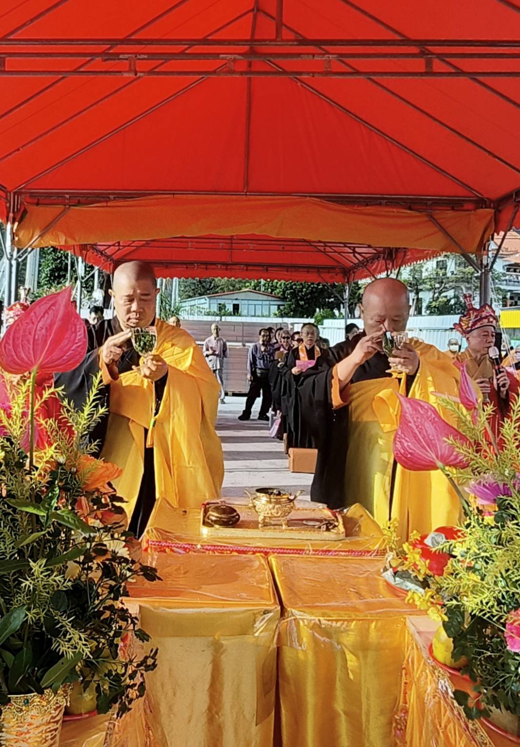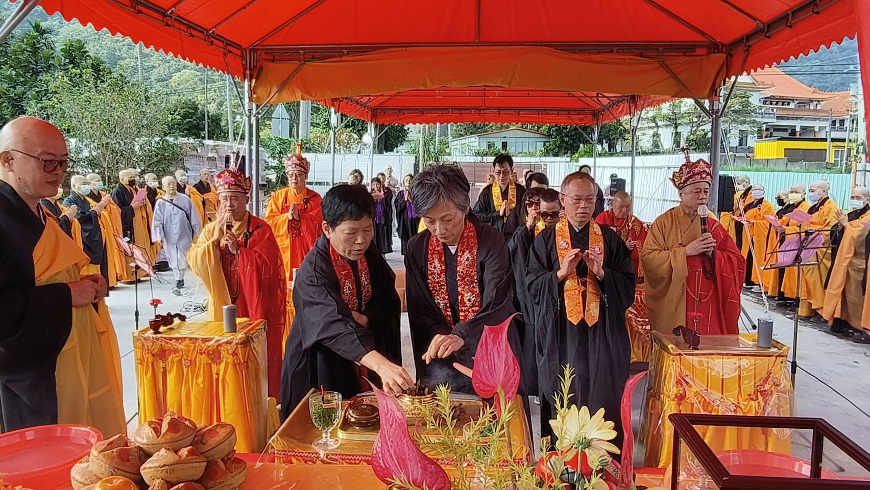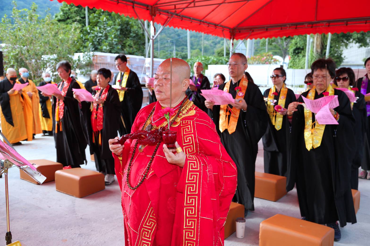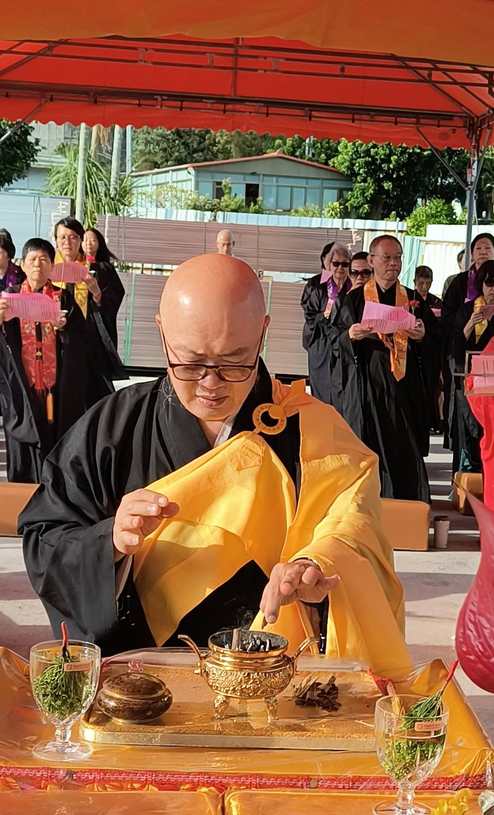 抵達送聖處,主法和尚、上傳下敦師父、齋主依序拈香。