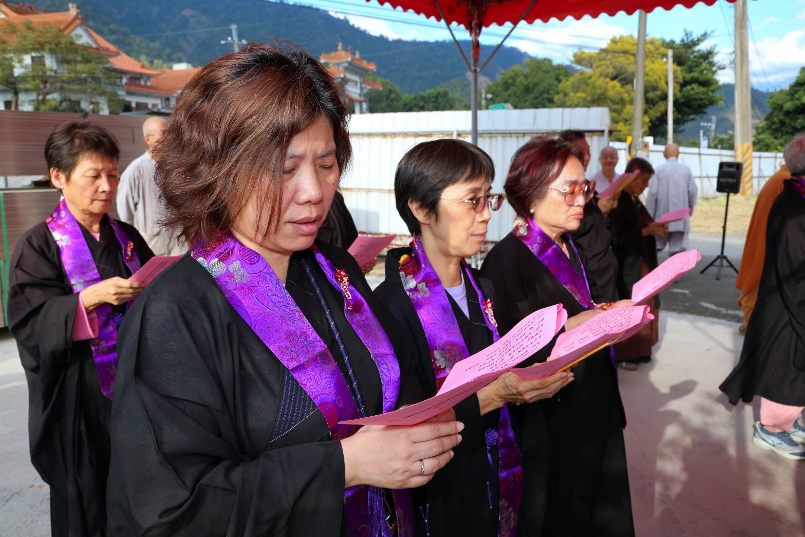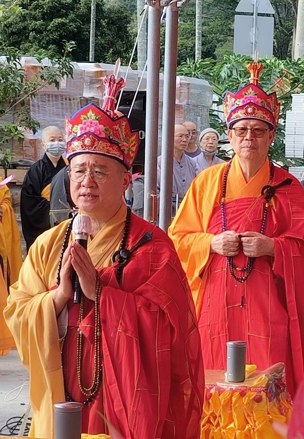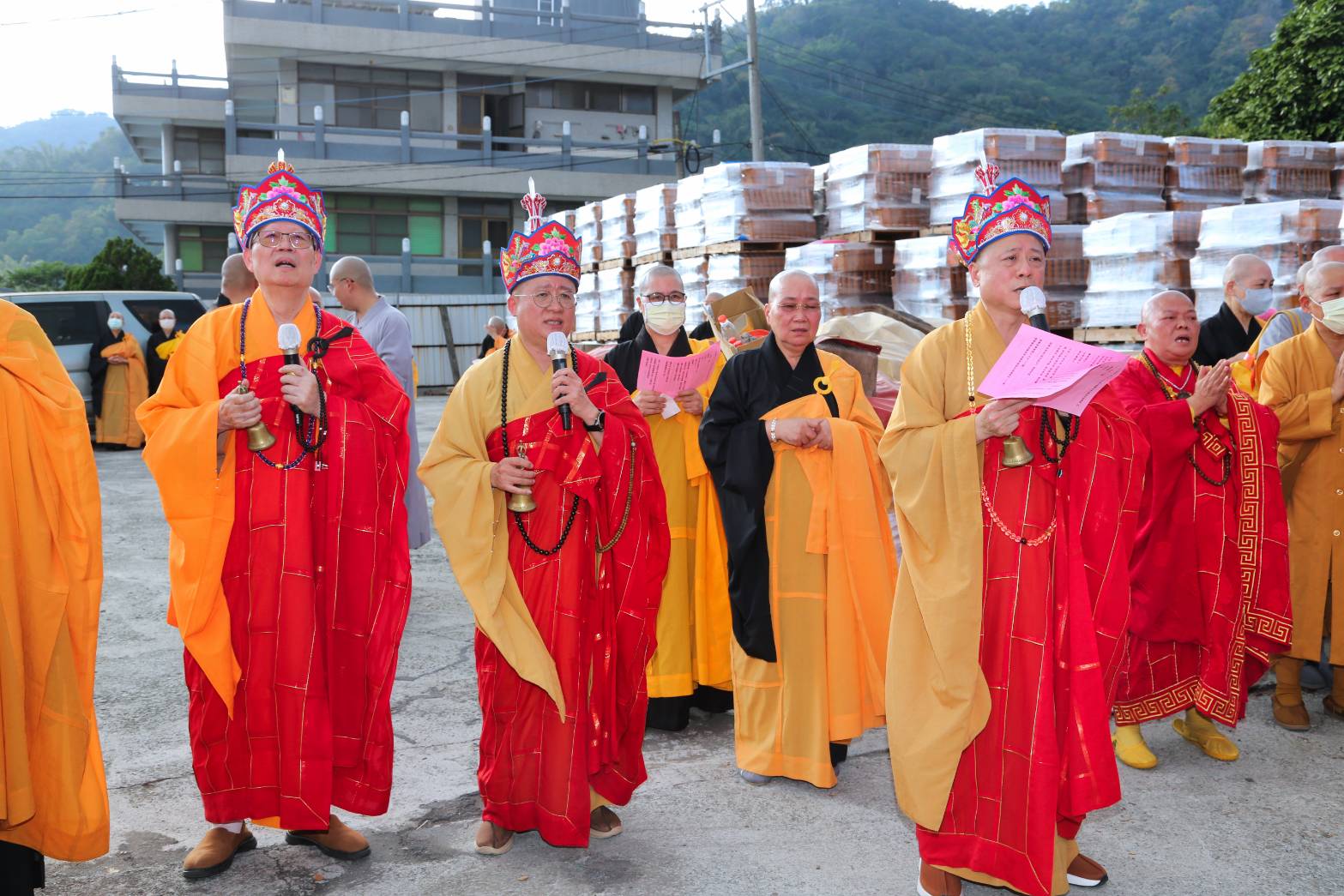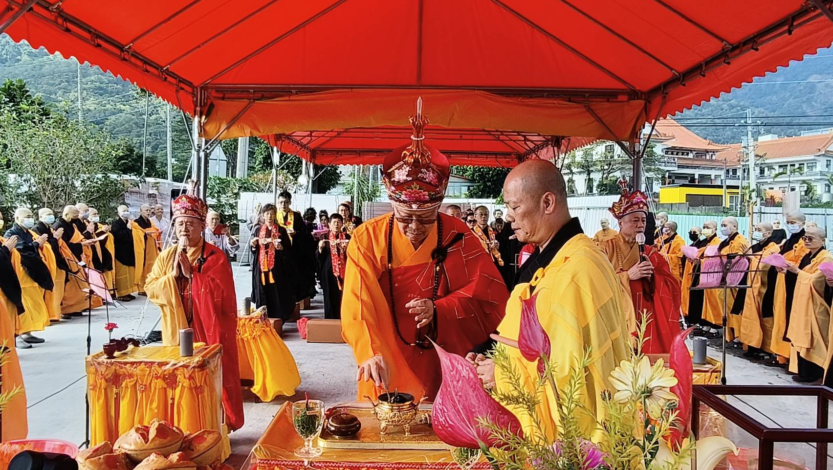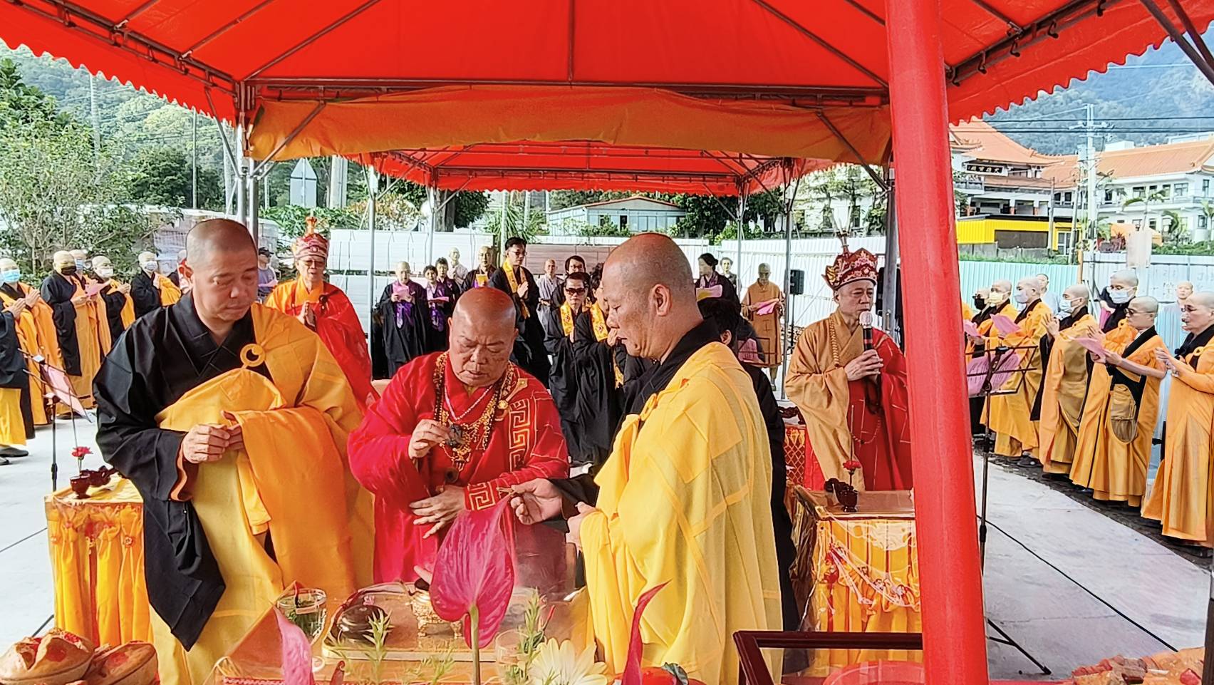 抵達送聖處,主法和尚、上傳下敦師父、齋主依序拈香。
