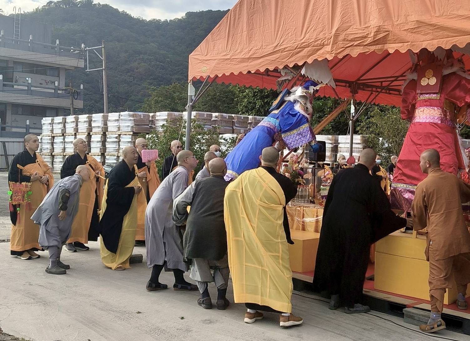 恭請面然大士、旛官到送聖棚。