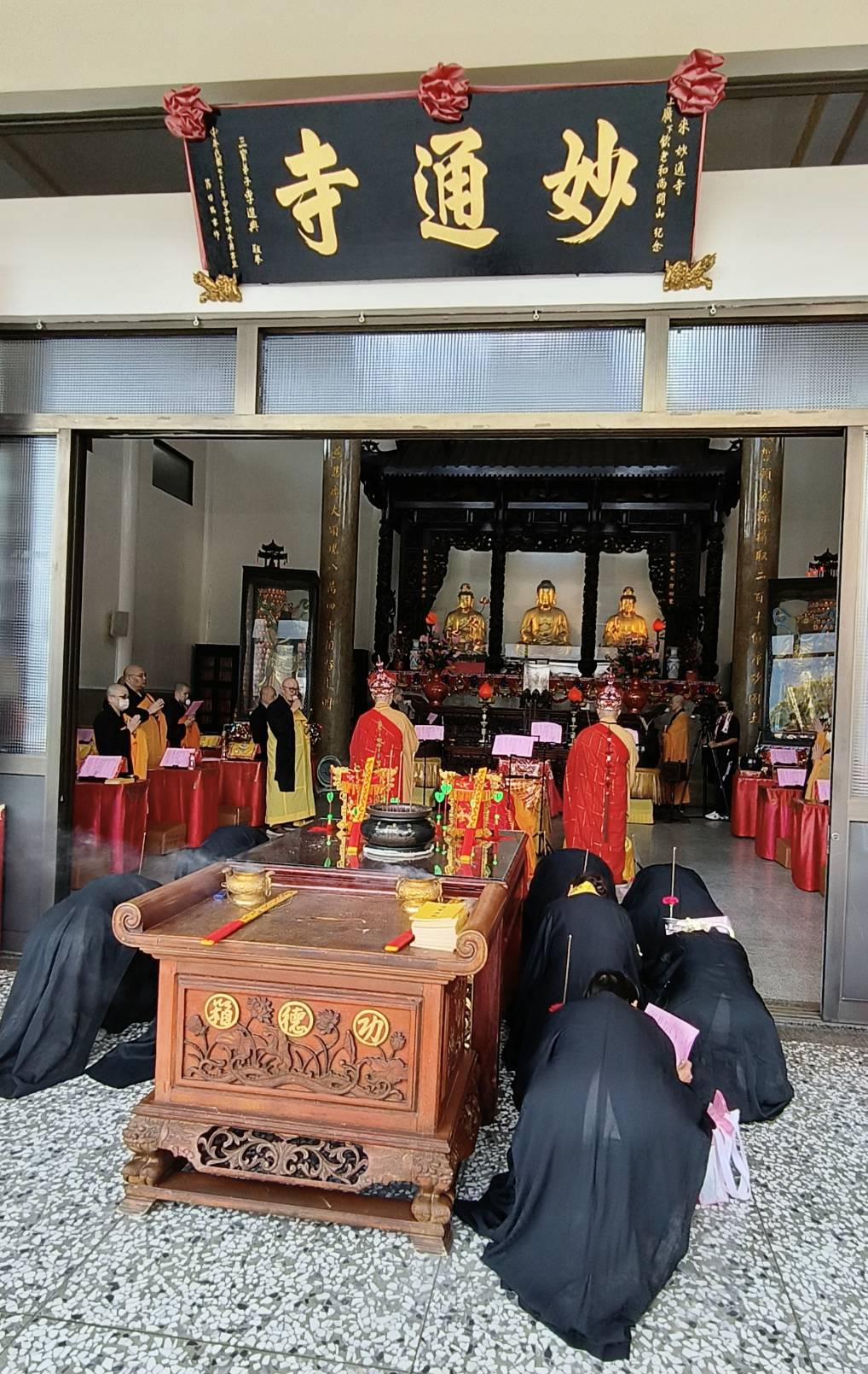 臺灣時間14:00在妙通寺大雄寶殿舉行化「金海毘盧寺弘法寺水陸大法會華藏法船」佛事。