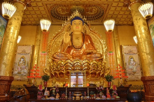 大佛高13米,右手結無畏印,左手結與願印。