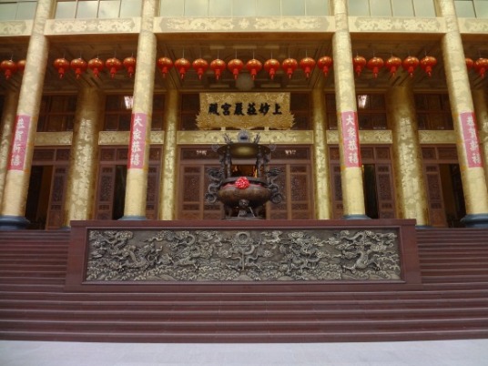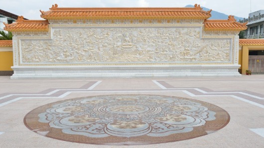 ↑毘盧樓閣廣場的白玉浮雕大照壁,浮雕內容為「華嚴經善財童子五十三參圖」,生動莊嚴